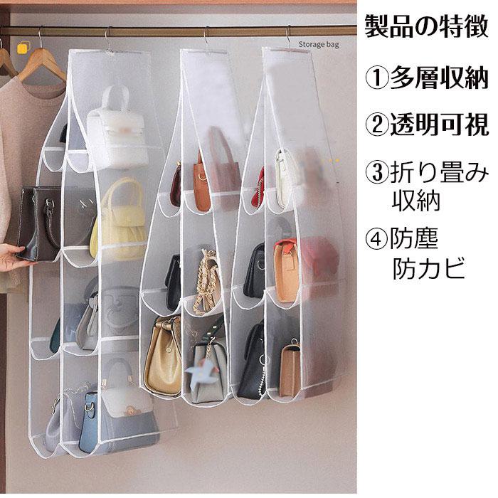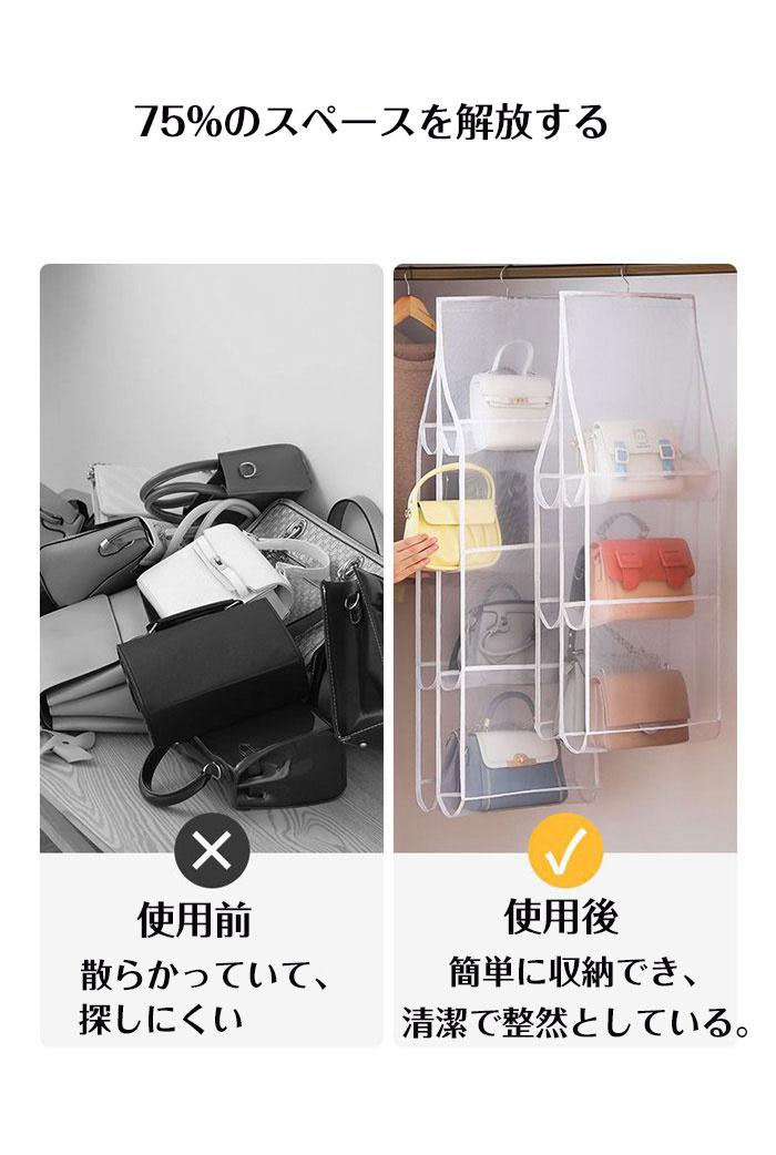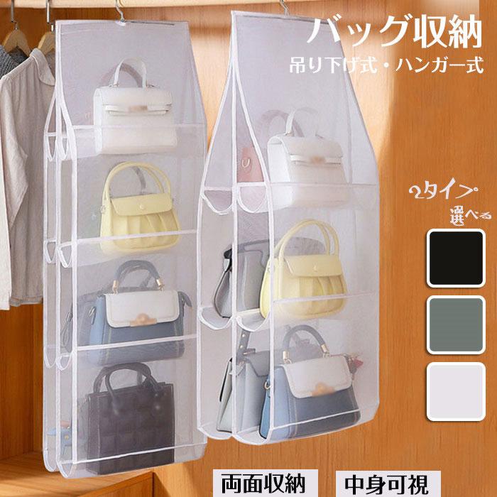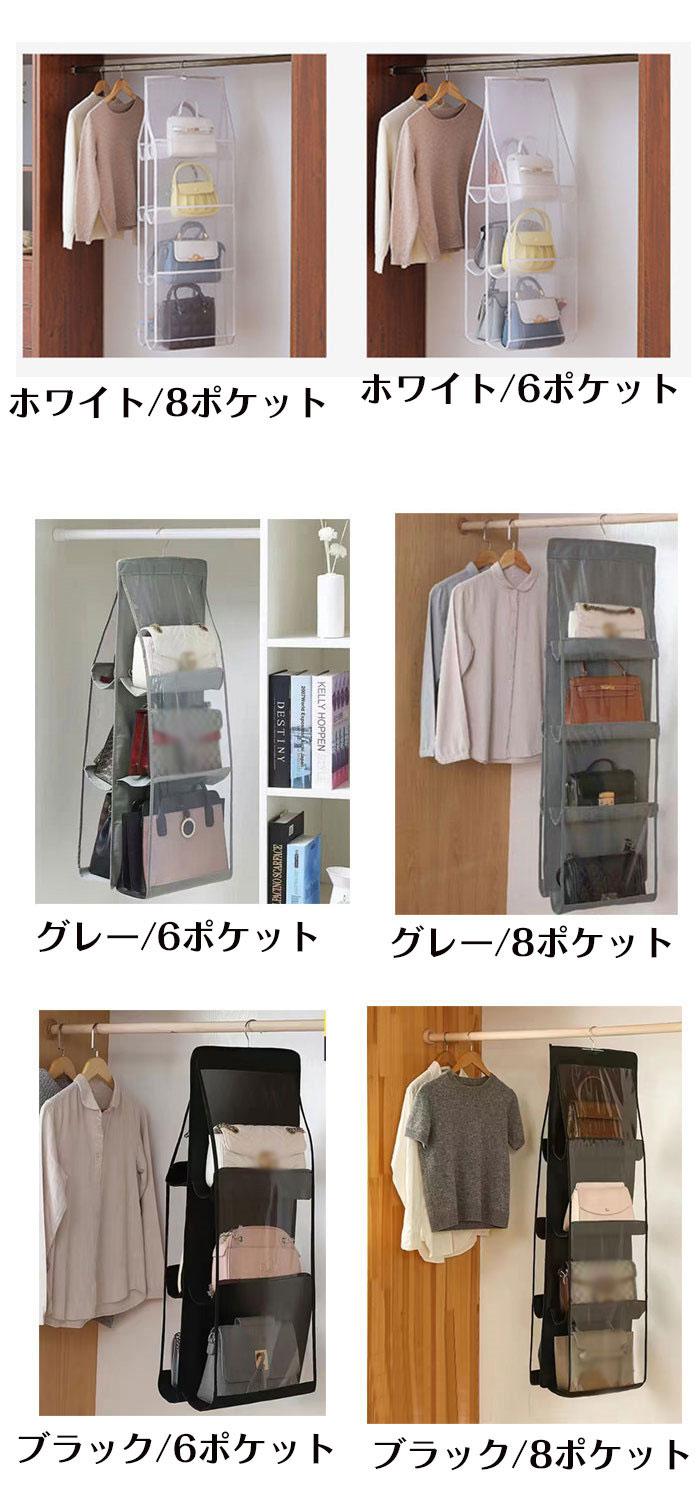バッグハンガーバッグ収納吊り下げ収納両 バッグ 小物 ブランド雑貨 豊富 ホワイト ブラック グレー 6ポケット 8ポケット