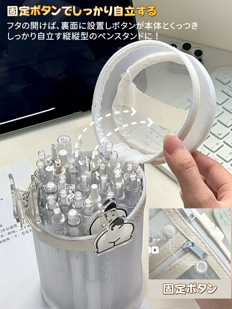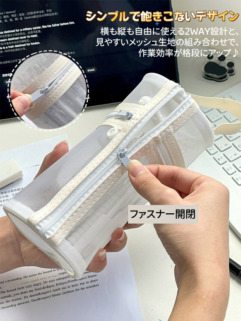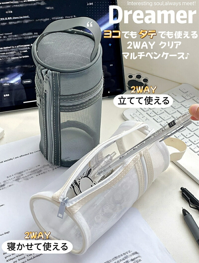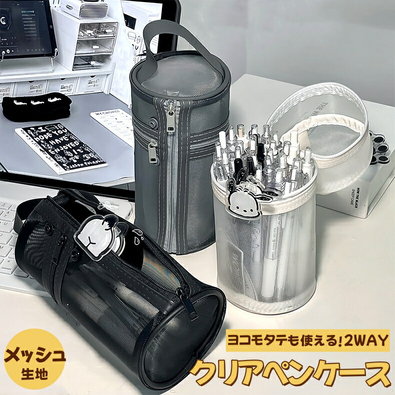 ペンケース 大容量 筆箱 自立 2WA 日用品雑貨 文房具 手芸 人気 グレー ホワイト ブラック