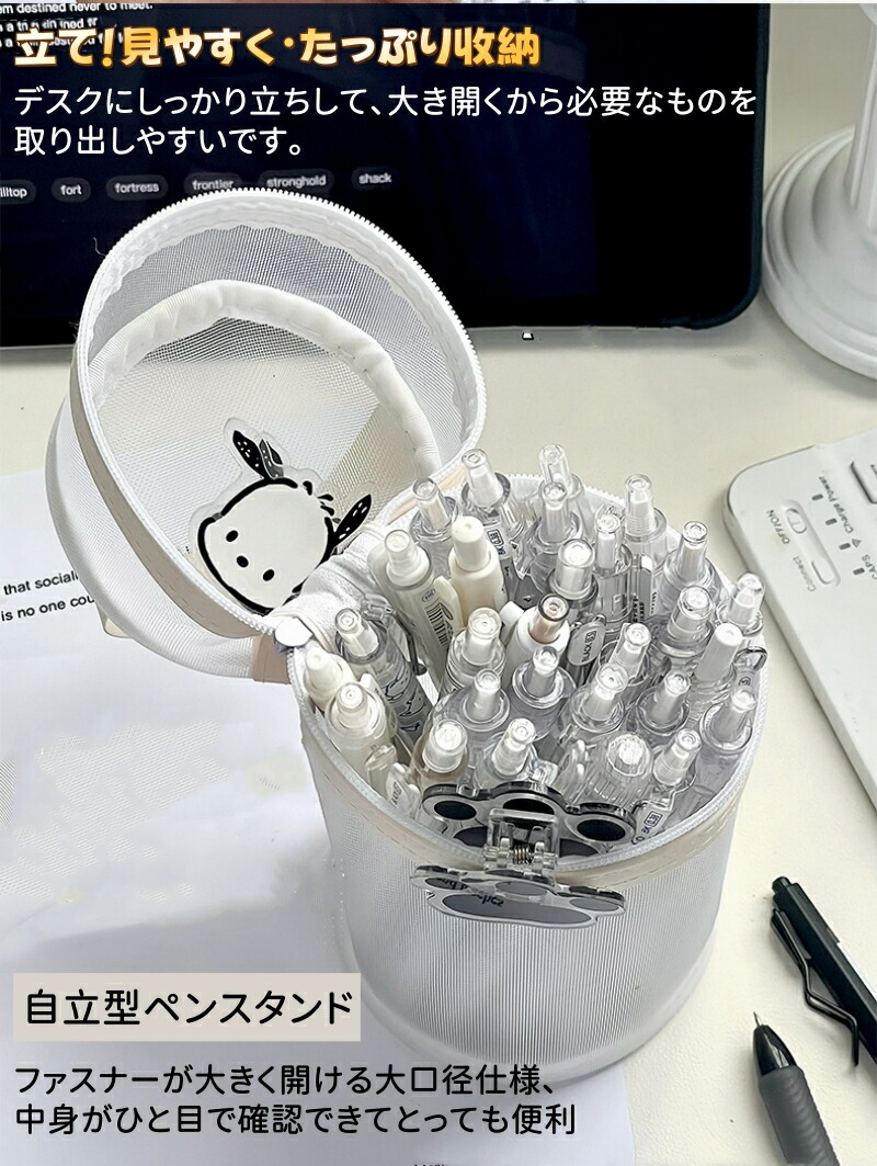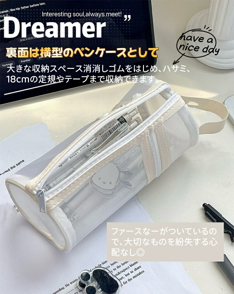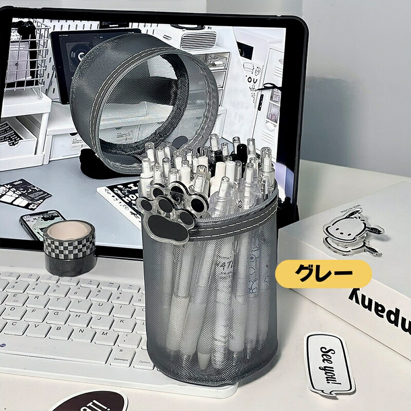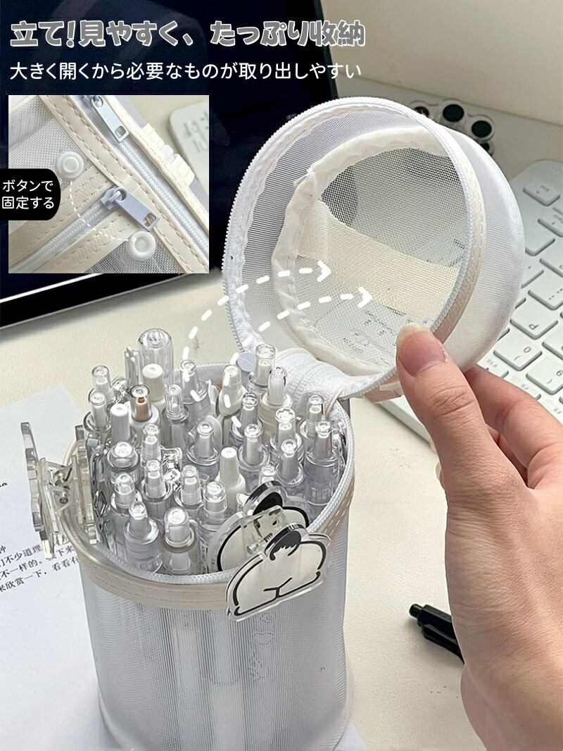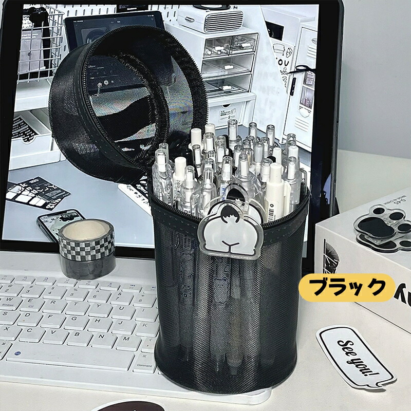 ペンケース 大容量 筆箱 自立 2WA 日用品雑貨 文房具 手芸 人気 グレー ホワイト ブラック