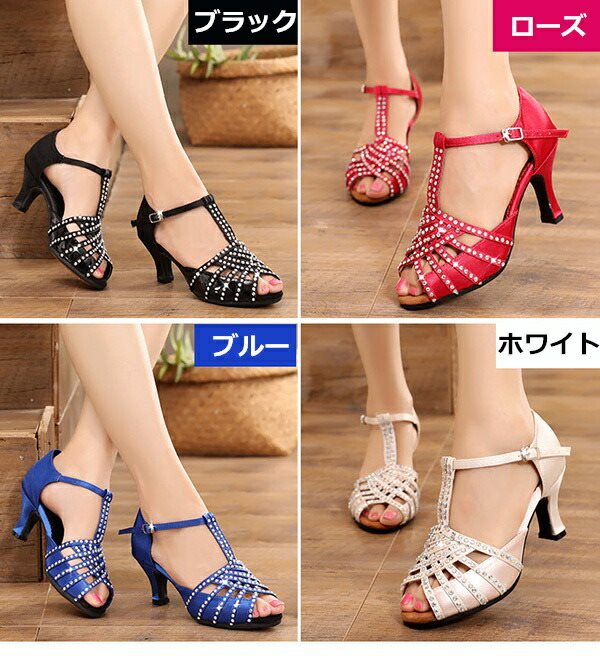 社交ダンスシューズモダンラテン兼用ダン スポーツ アウトドア 超目玉商品 22.0 22.5 23.0 23.5 24.0 24.5 25.0 25.5 ブラック ブルー ホワイト ローズ