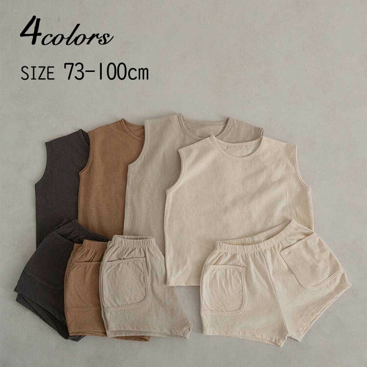 セットアップ ベスト ノースリーブ T キッズ ベビー マタニティ 新作 ホワイト ベージュ ブラウン グレー 73cm 80cm 90cm 100cm