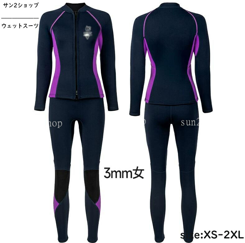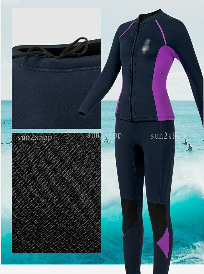 3mm ウェットスーツ 2点セット プ マリンスポーツ ウェットスーツ レディースウェットスーツ 続々登場 ブラック 紫黒 XS S M L XL 2XL