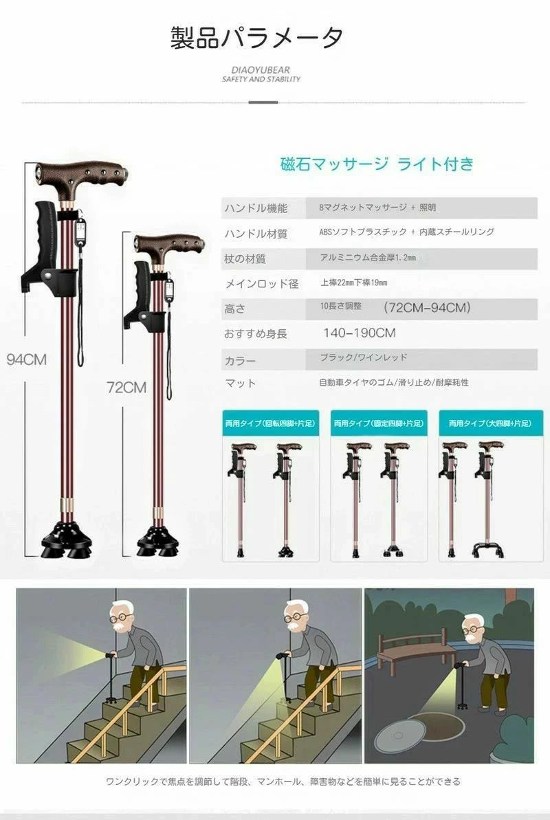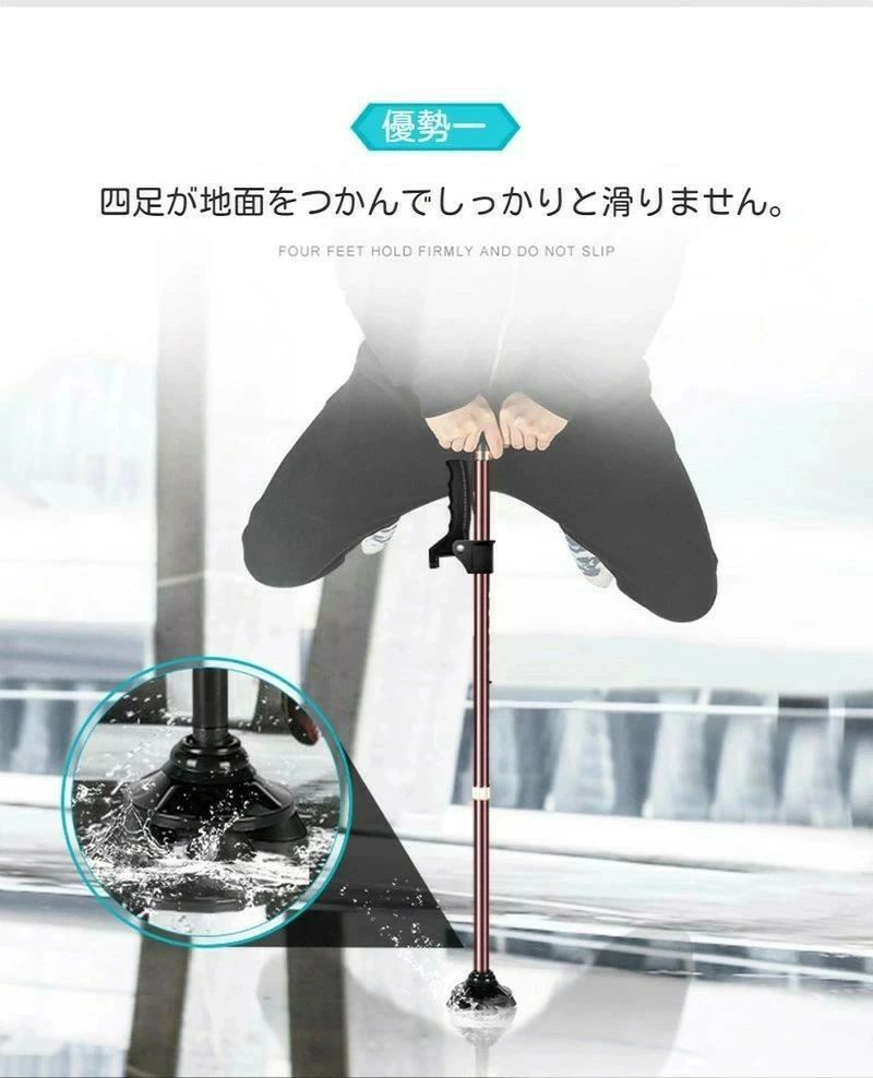つえ 杖 軽量 自立式 4点杖 介護 プラック ワインレッド A セット B セット C セット