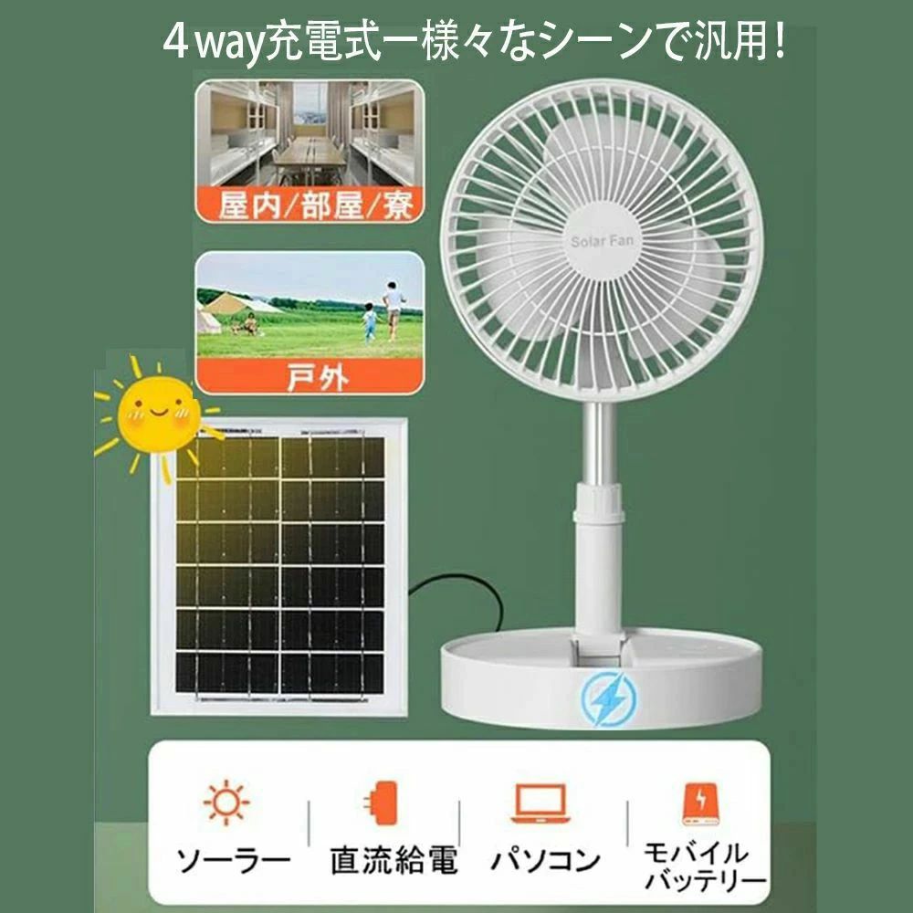 ソーラー 充電式 扇風機 静音 キャン