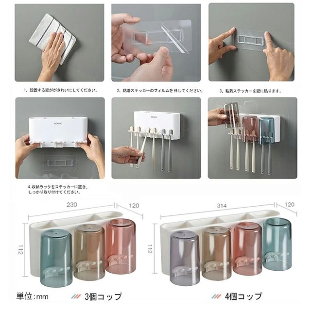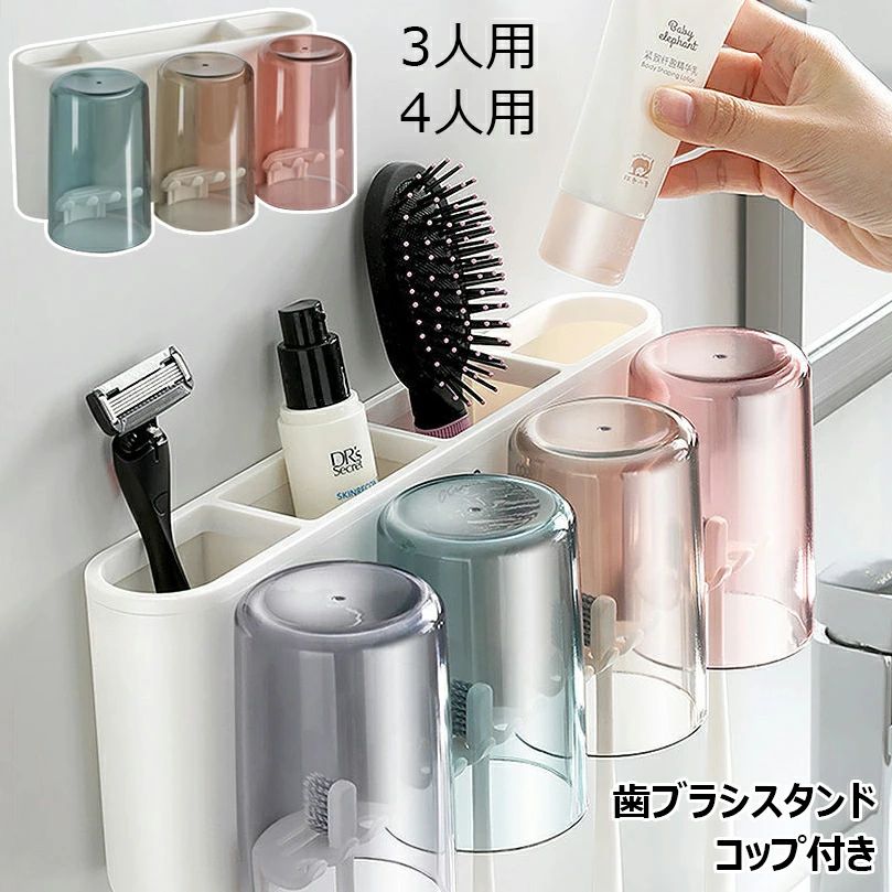 歯ブラシスタンド コップ付き 壁掛け 日用品雑貨 文房具 手芸 続々入荷中 3人用 4人用