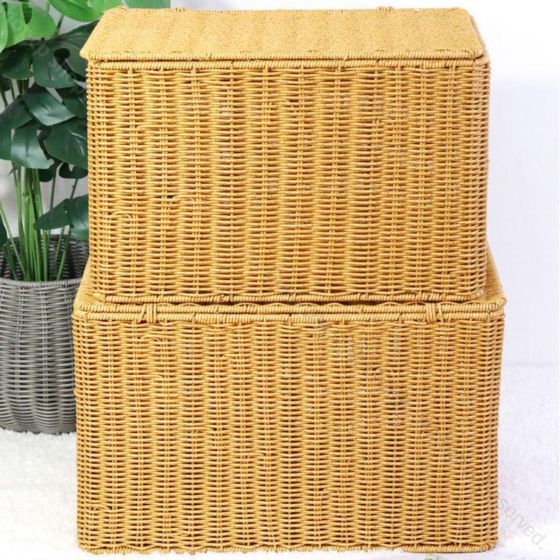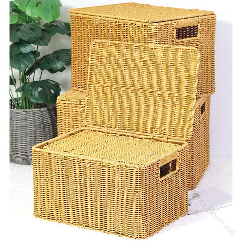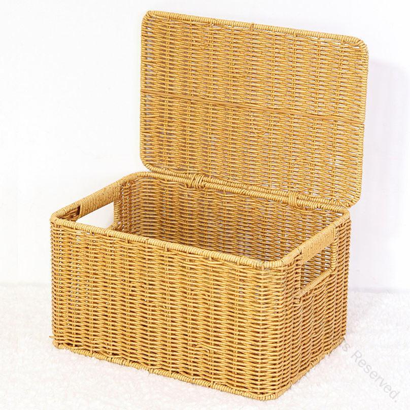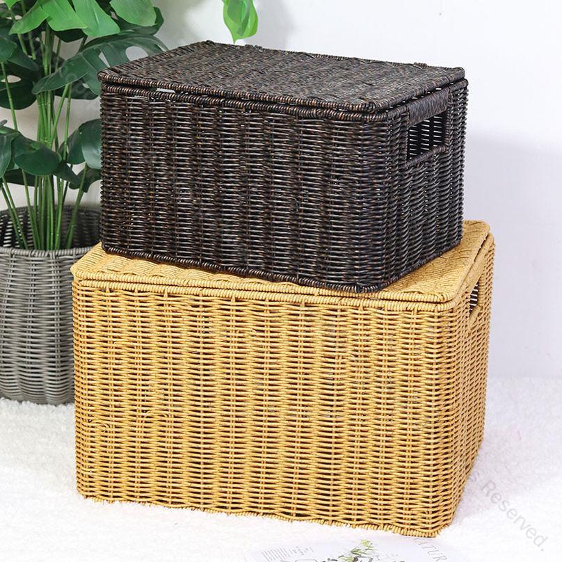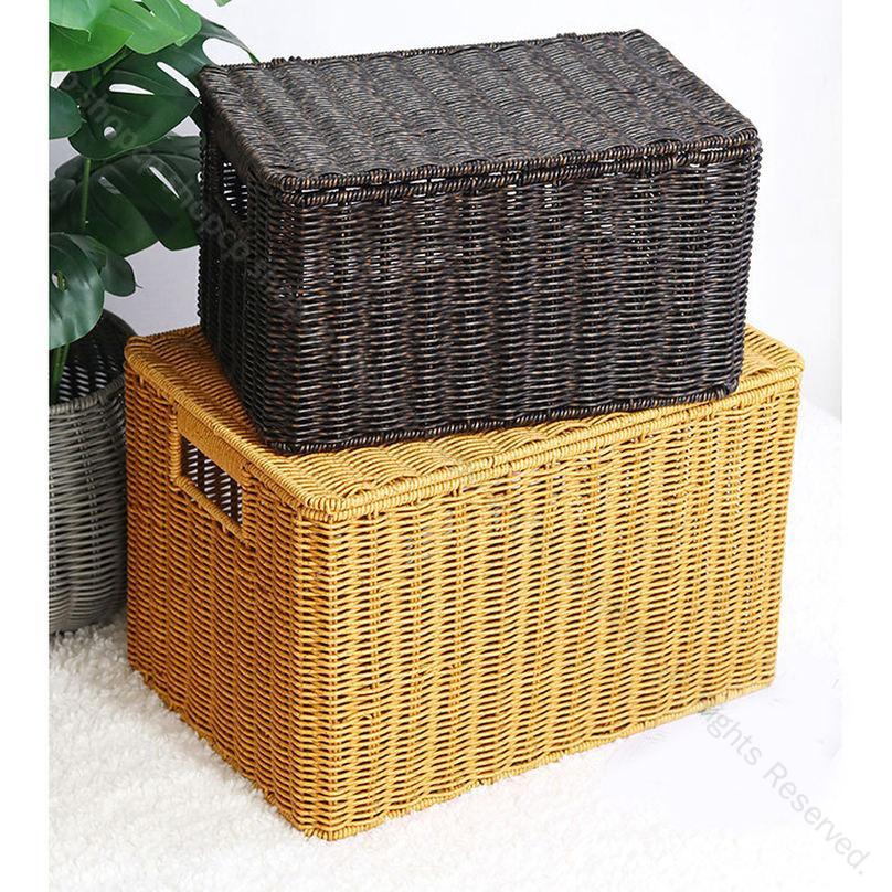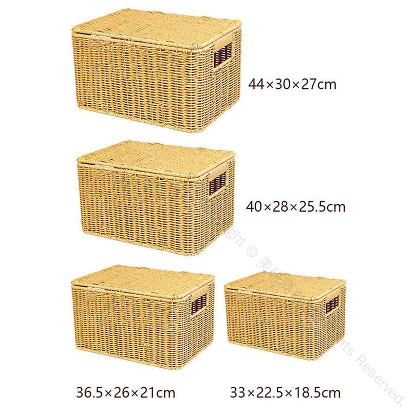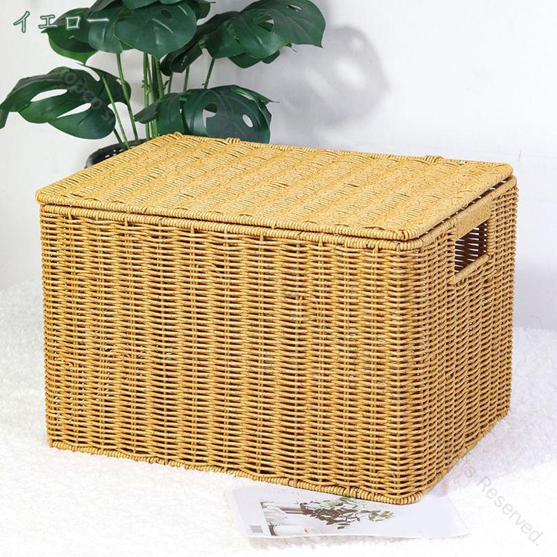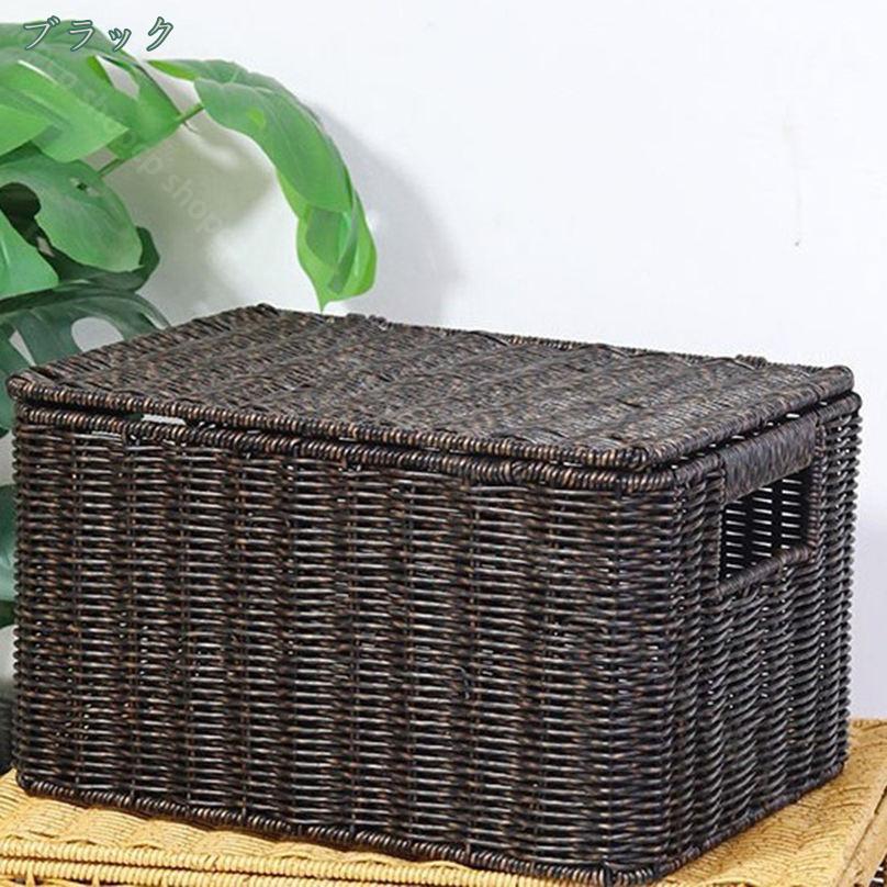 フタ付き収納バスケット おしゃれ収納かご ランドリーバスケット大 和風かご 可愛い籠 省スペース収納 洗濯物整理 浴室収納 メイク用品整理 ラタン編みかご 卓上収納 トイレットペーー 大きいバスケット