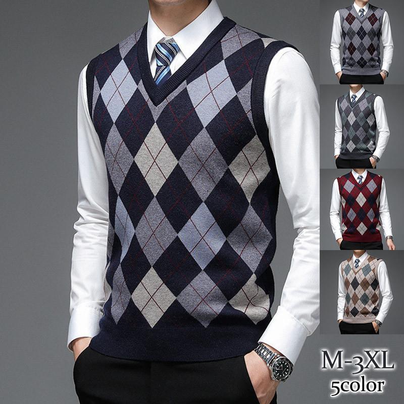 ニットベスト メンズ Vネック プルオ オーダーメイド ベスト ジレ 超目玉商品 A01 A02 A03 A04 A05 M L XL 2XL 3XL
