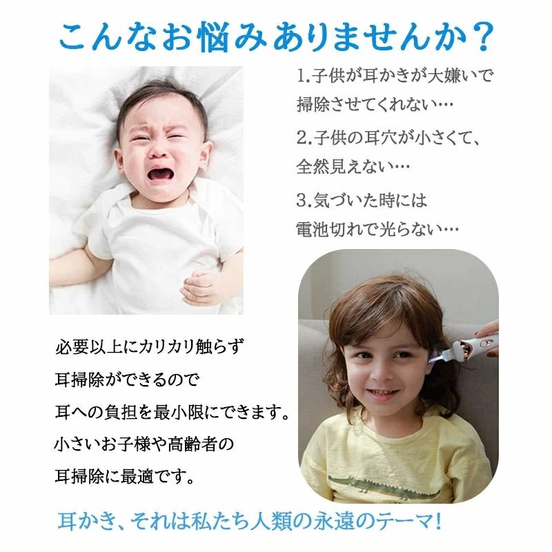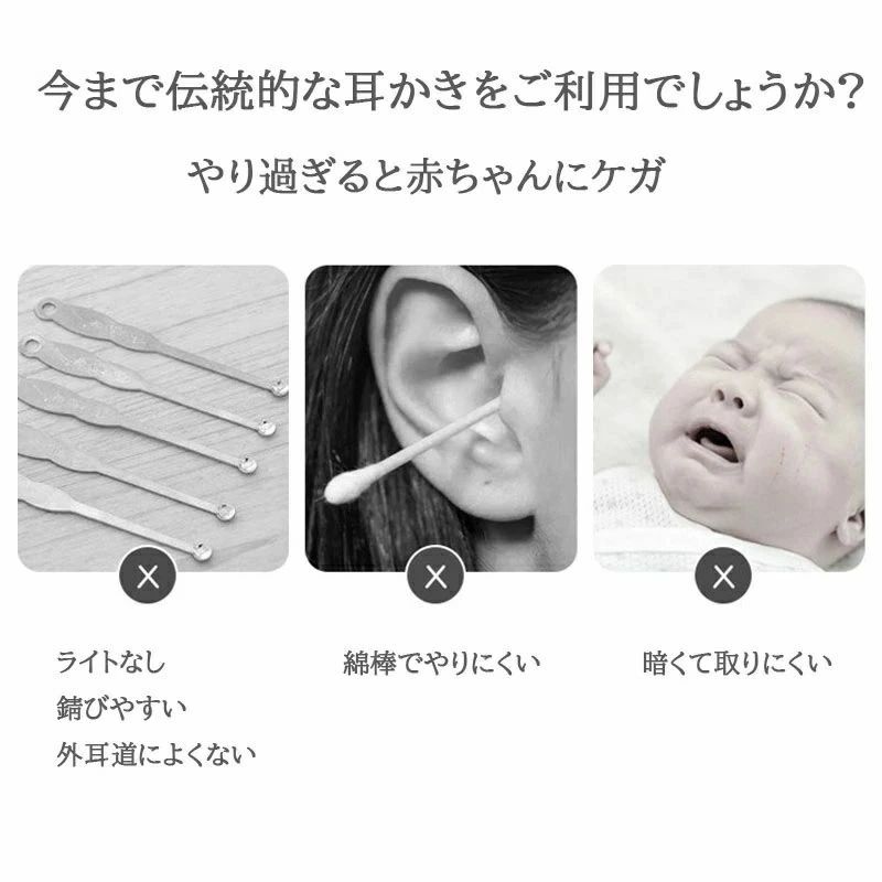赤ちゃん 光る耳かき ライト 耳そうじ ブラック ホワイト