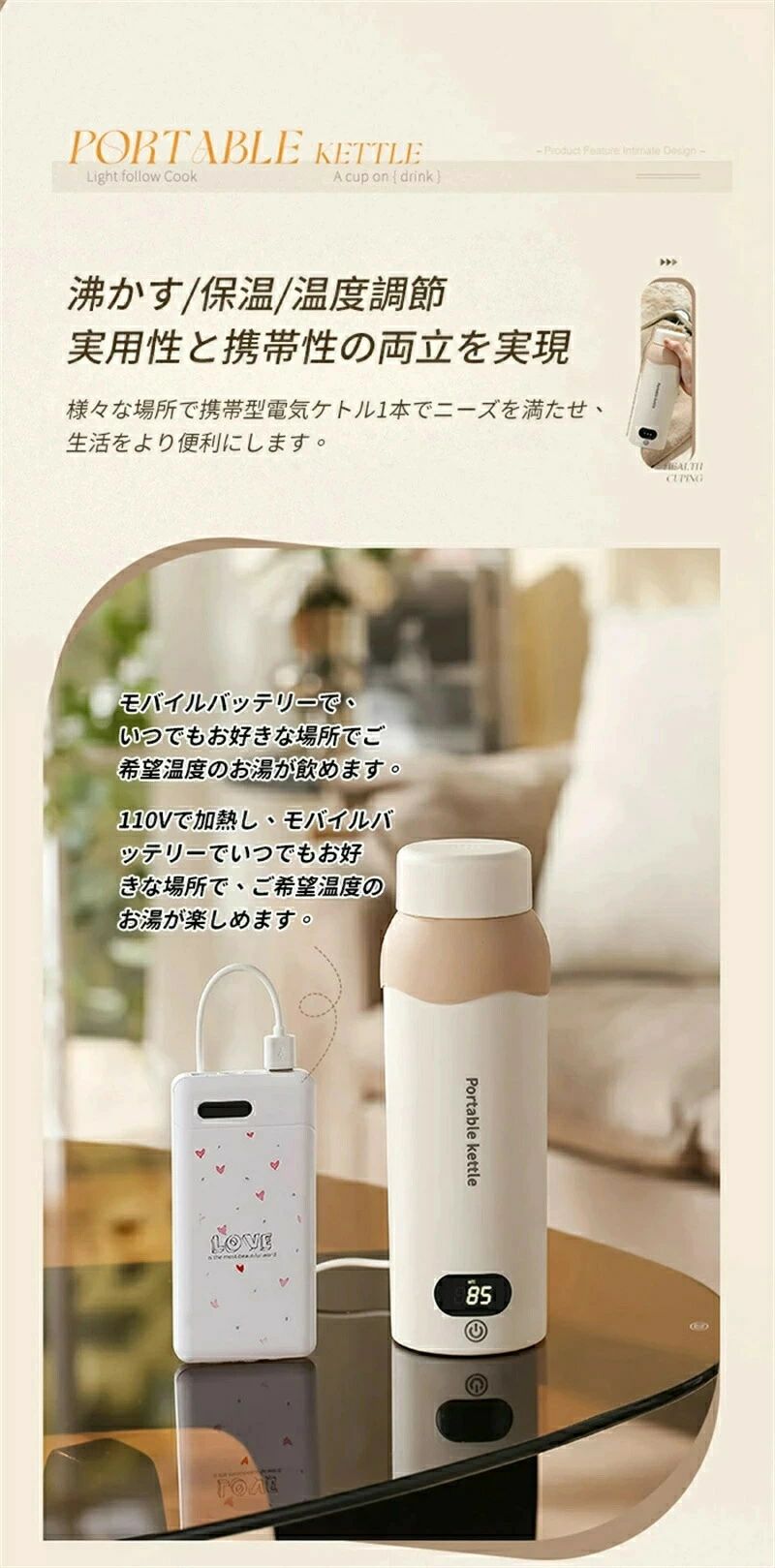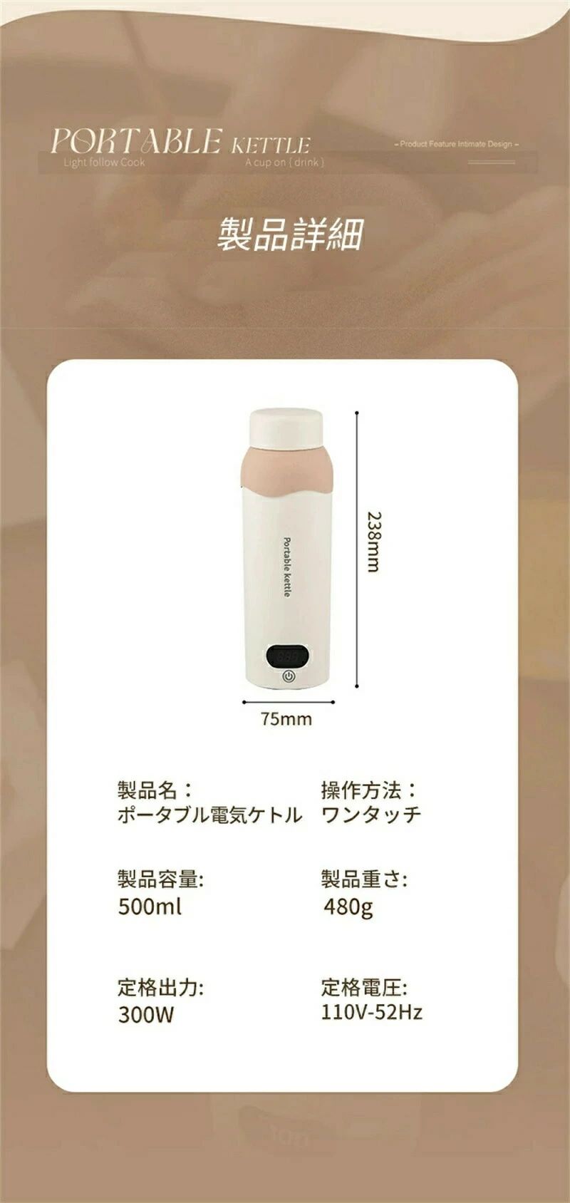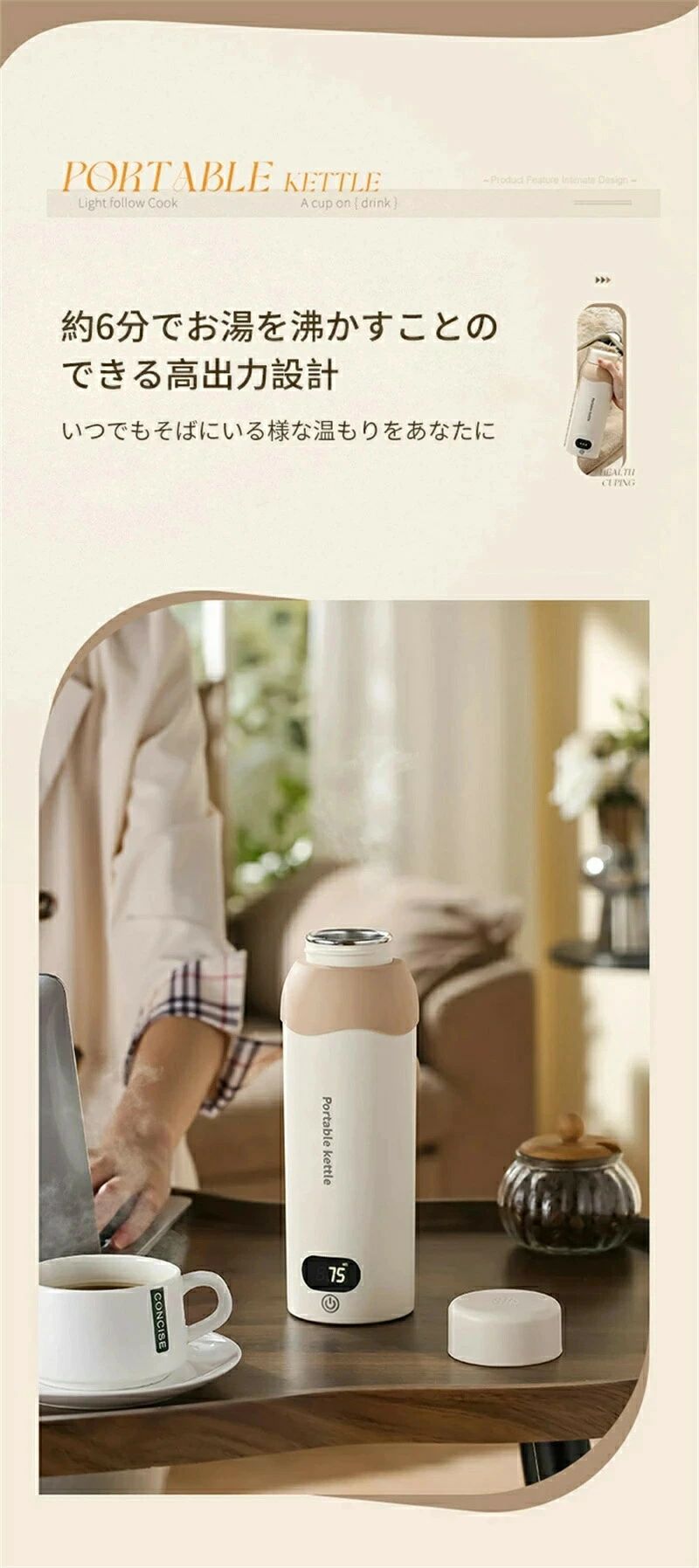 湯沸かし 5分で沸騰 空だき防止機能 自動電源OFF 漏れ防止 6段階温度設定 ボトル電気ケトル保温機能付き 電気 ポータブルケトル