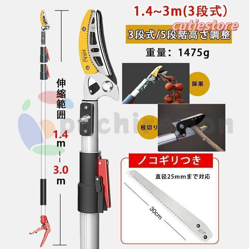 高枝切りバサミ 3m 4m 5m 伸縮 1.2~2m(2段式) 1.8~3m(2段式) 1.4~3m(3段式) 1.9~4.5m(3段式)