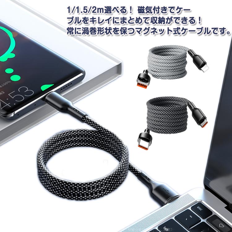 マグネット式自動収納 充電ケーブル 1 スマートフォン タブレット用ケーブル 変換アダプター 新作 黒1メートル 黒1.5メートル 黒2メートル 灰1メートル 灰1.5メートル 灰2メートル type-c+type-c(iPhone15対応) type-c+lightning usb+lightning usb+type-c(iPhone15対応不可)