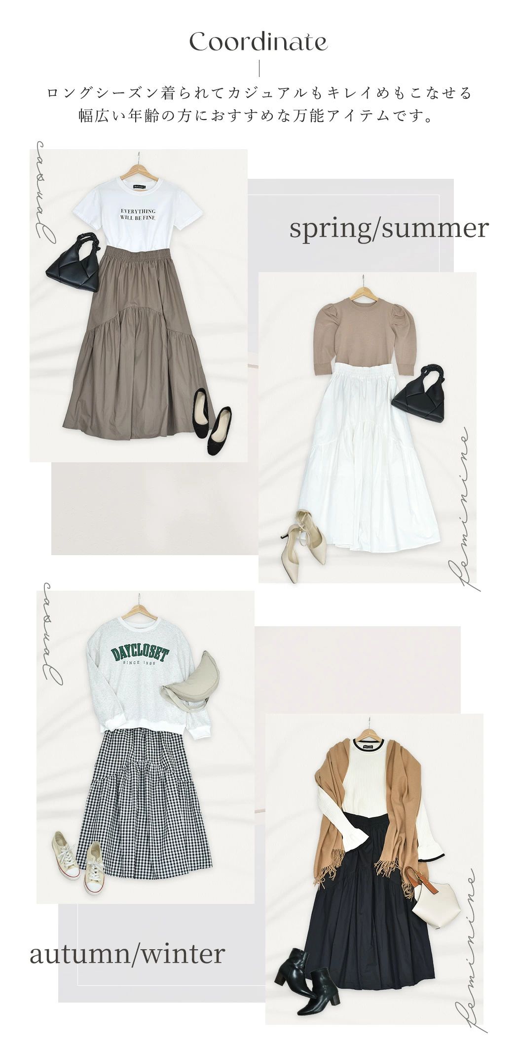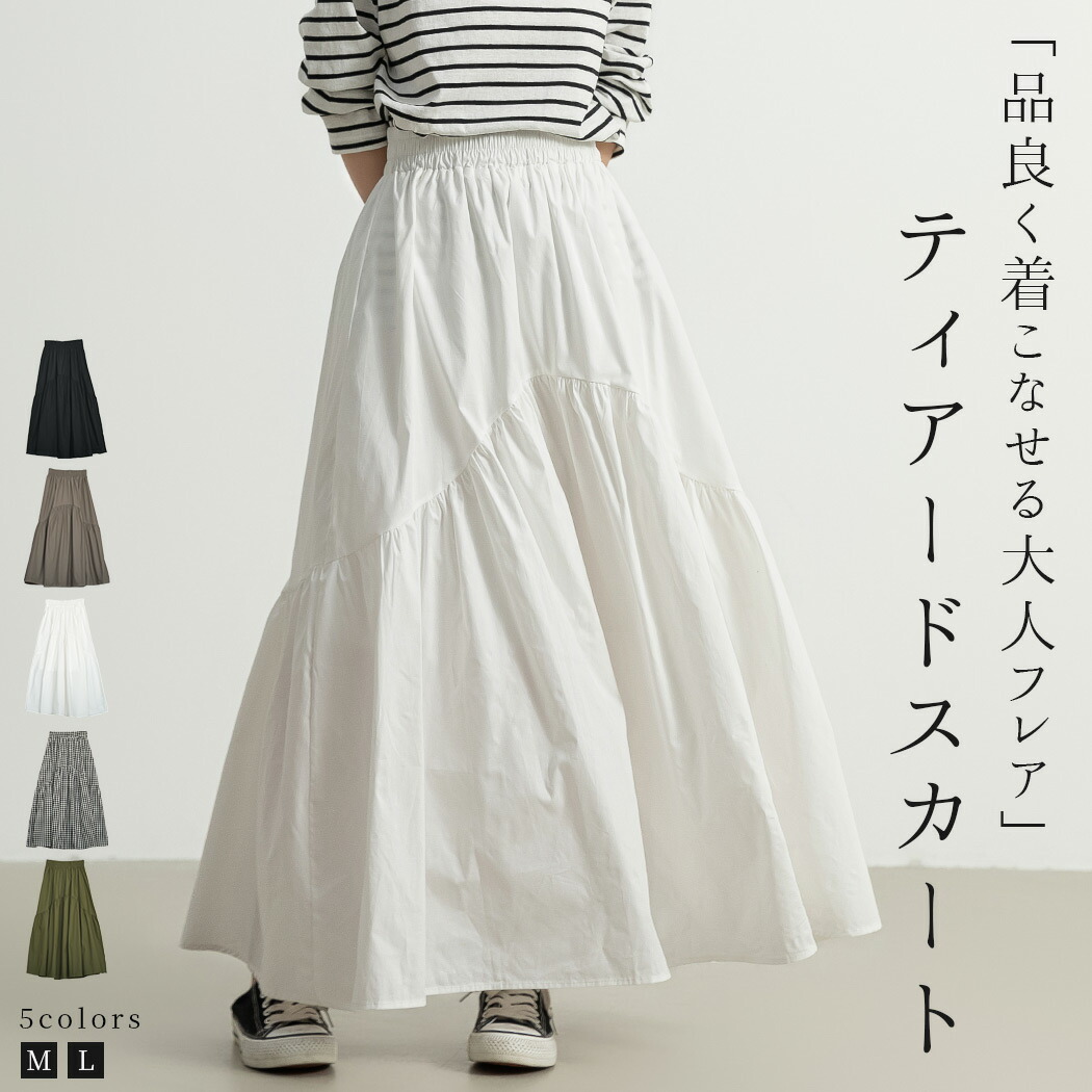 Aライ フレアスカート ロングスカート ボトムス スカート 人気 ブラック ダークグレー ホワイト ブラック×チェック カーキ M L