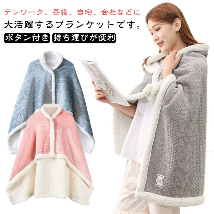 ブランケットボタン付きレディースポンチ 寝具 毛布 ブランケット 早い者勝ち ブルー グレー ピンク