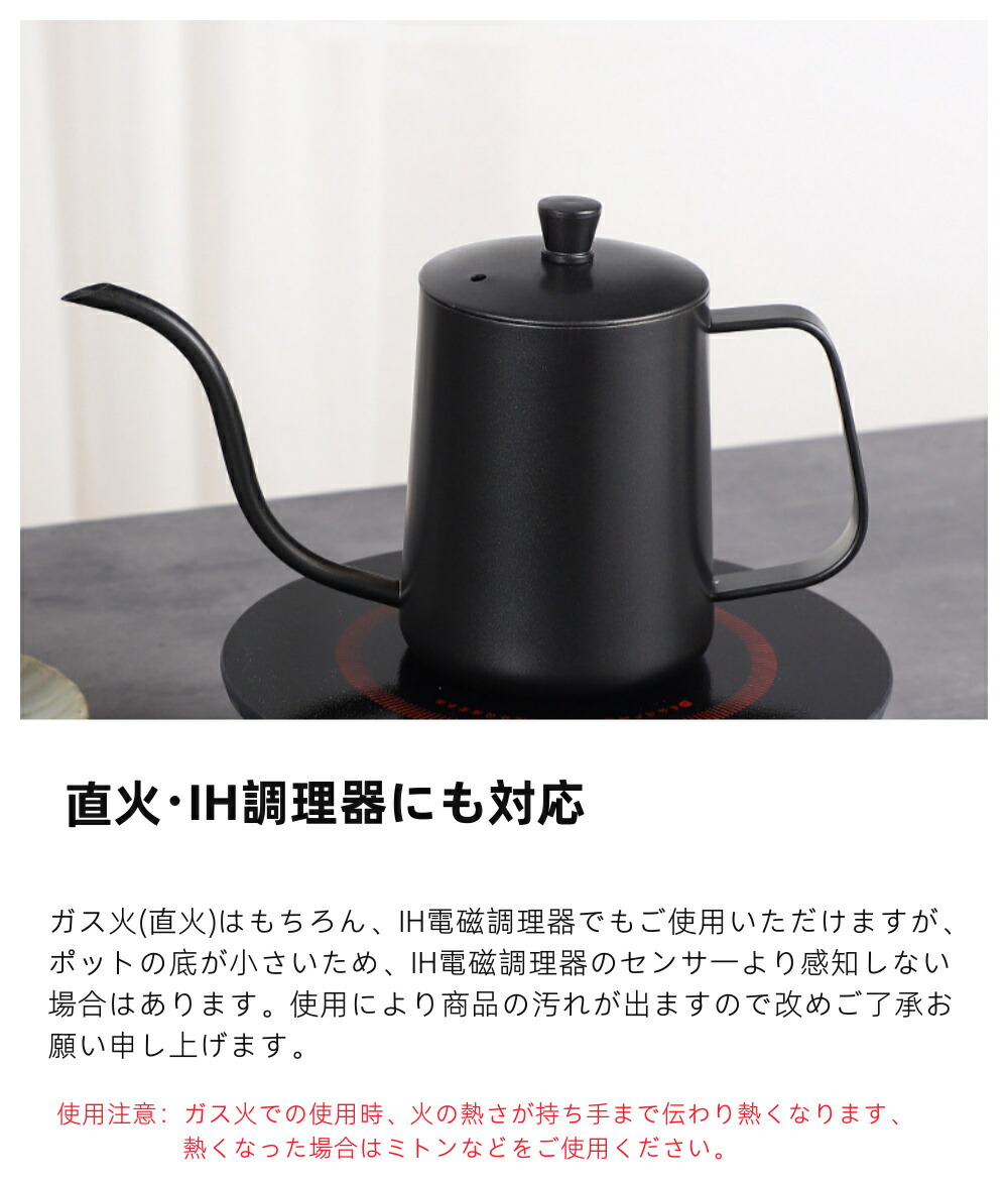 コーヒーケトル コーヒーポット 直火 コーヒー お茶用品 ドリップポット 続々登場 ブラック シルバー