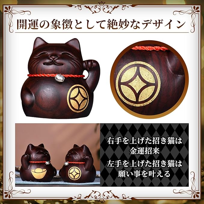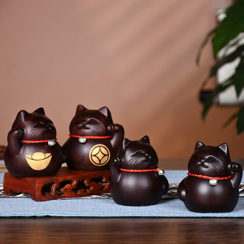 金運招き猫 置物 おしゃれ 木製 木彫