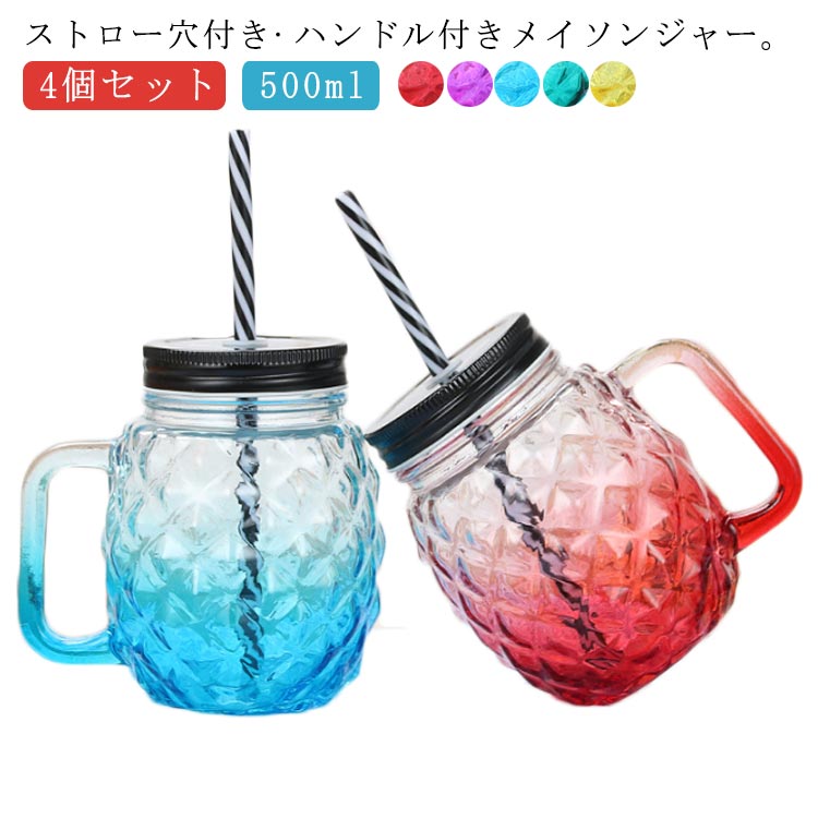 メイソンジャー ハンドル付き 蓋付き 食器 カトラリー グラス グラス タンブラー タンブラー 早い者勝ち レッド パープル ブルー グリーン イエロー