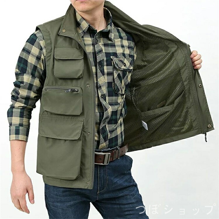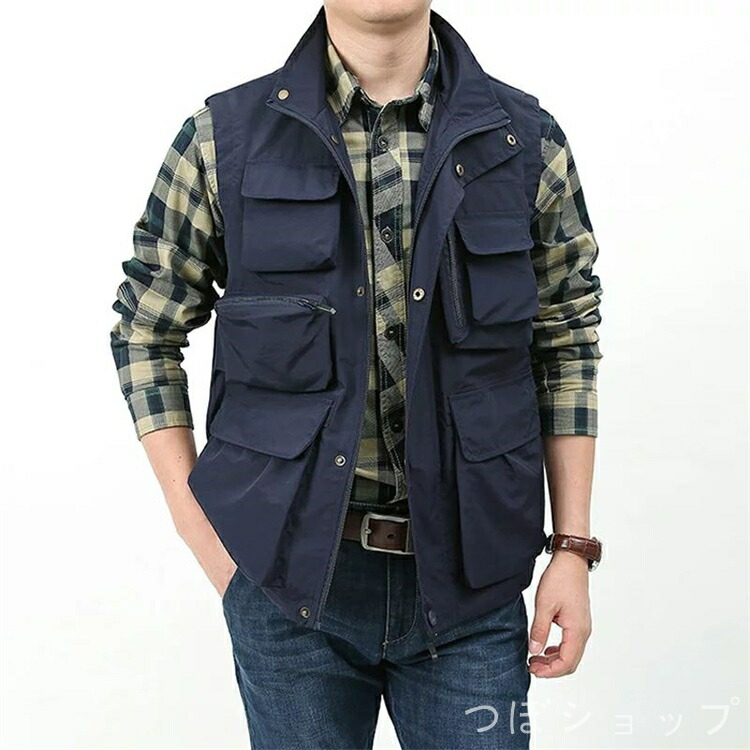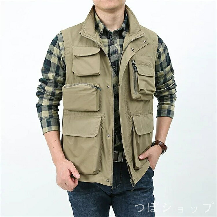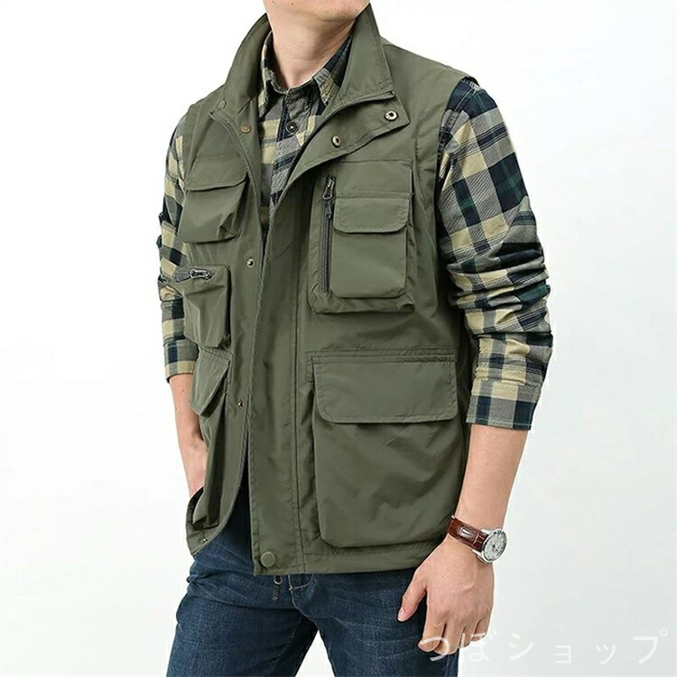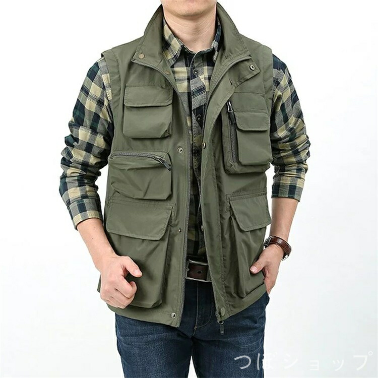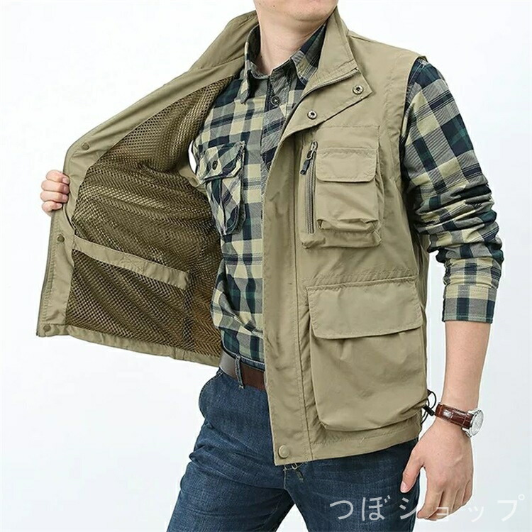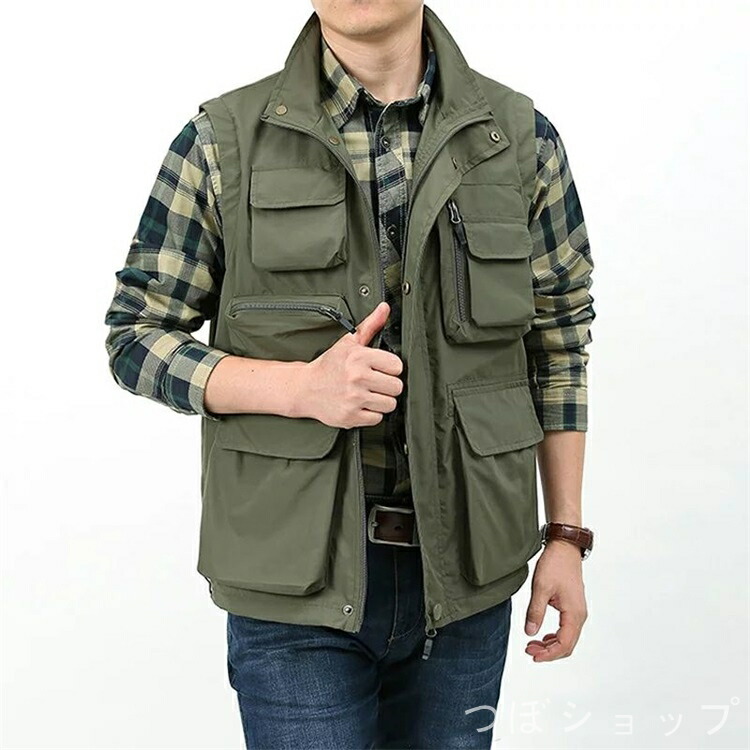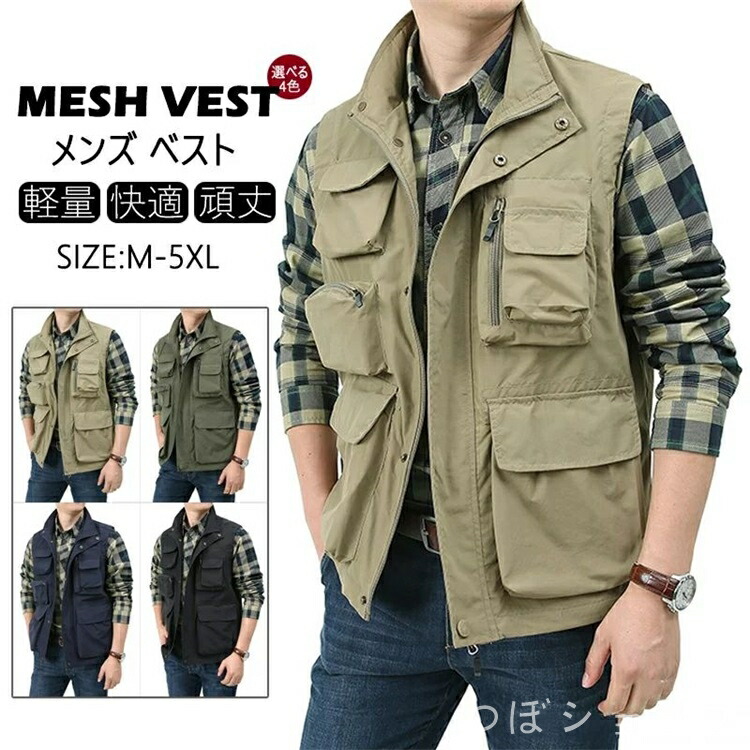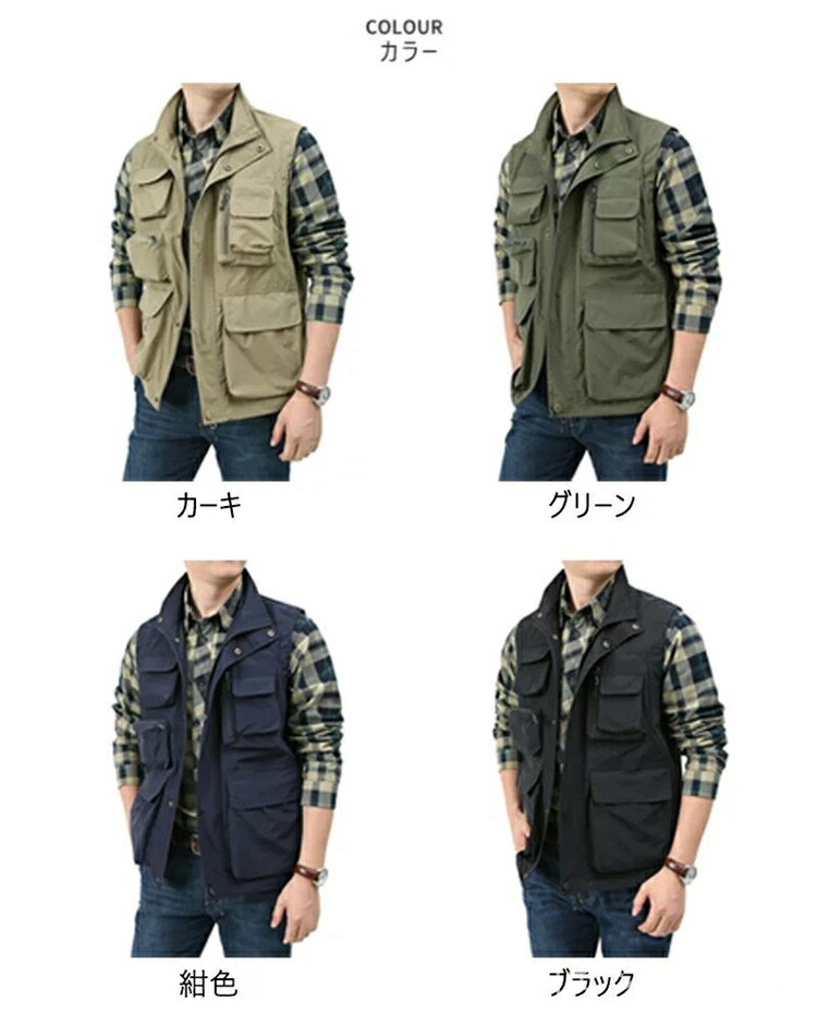 ベスト メンズ お釣りベスト 春夏 男 メンズファッション 豊富な品揃え カーキ グリーン 紺色 ブラック M L XL 2XL 3XL 4XL 5XL