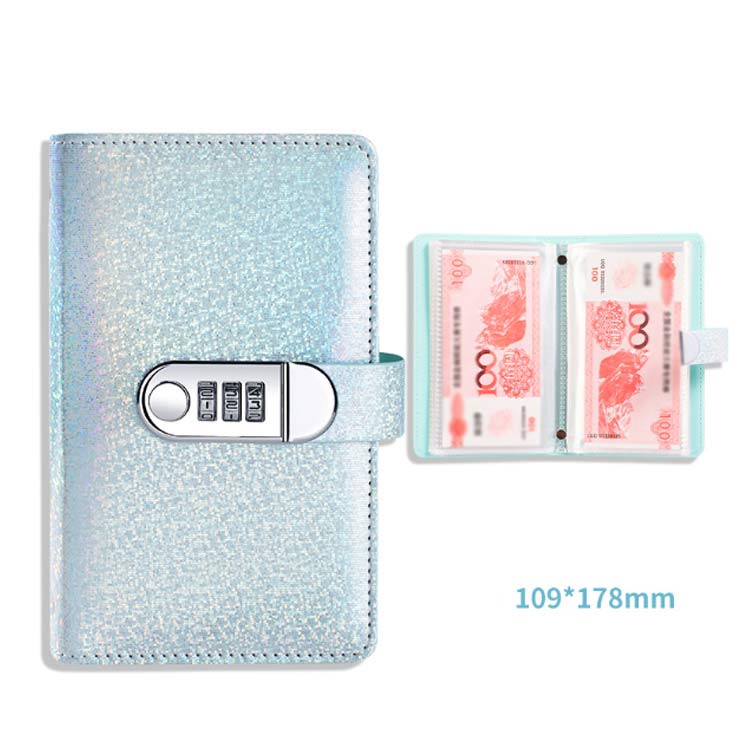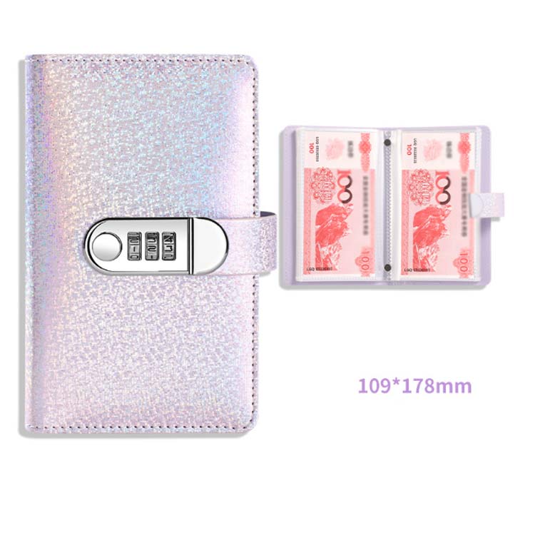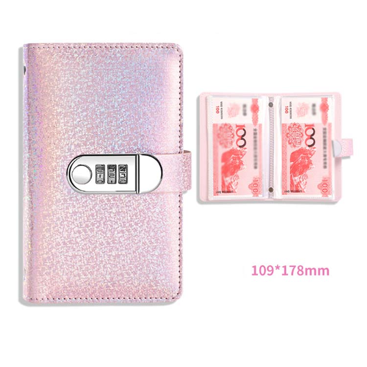 お金管理 貯金手帳 鍵付き キラキラ ピンク ブルー ブラック パープル