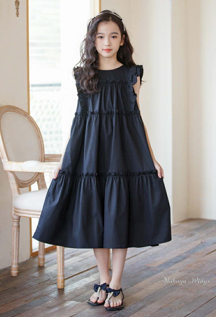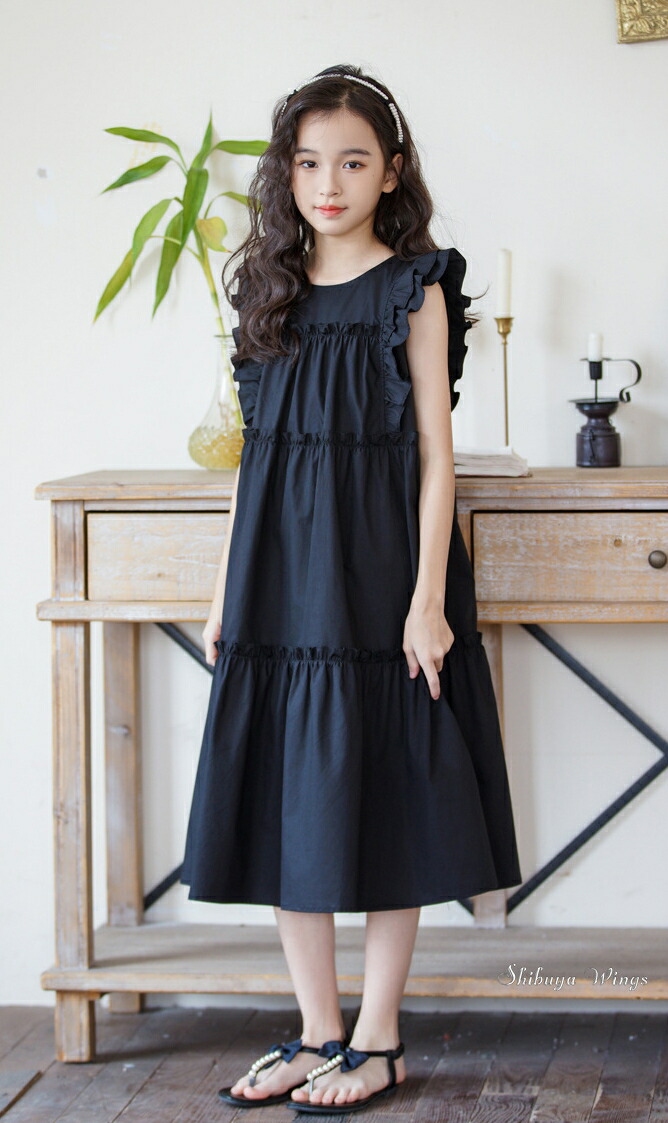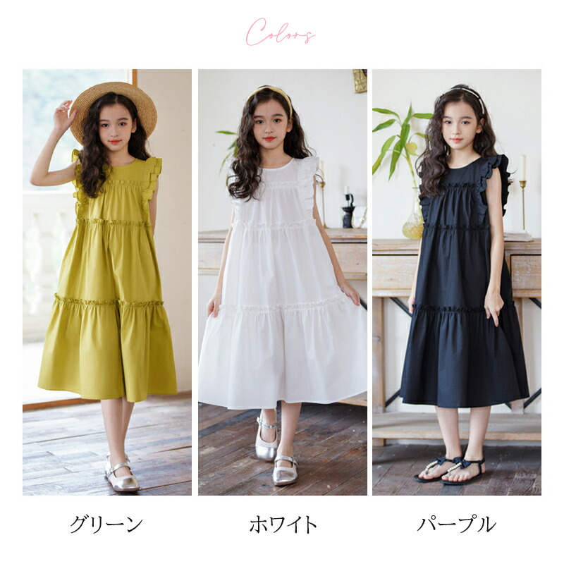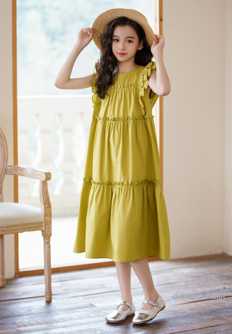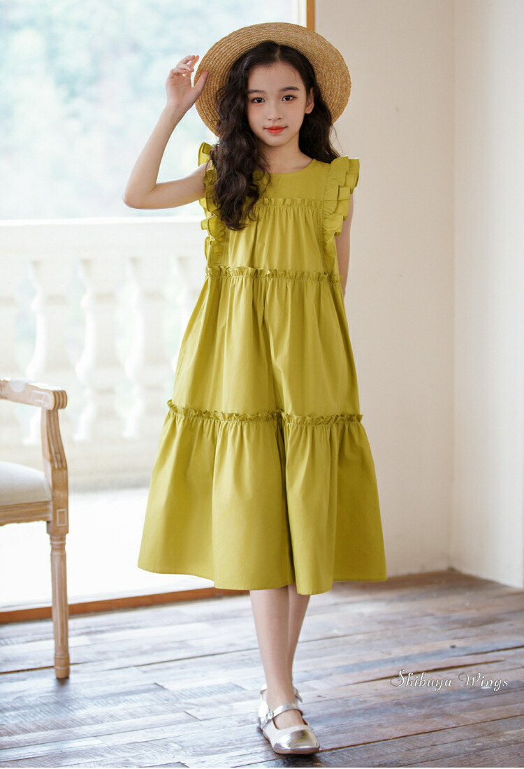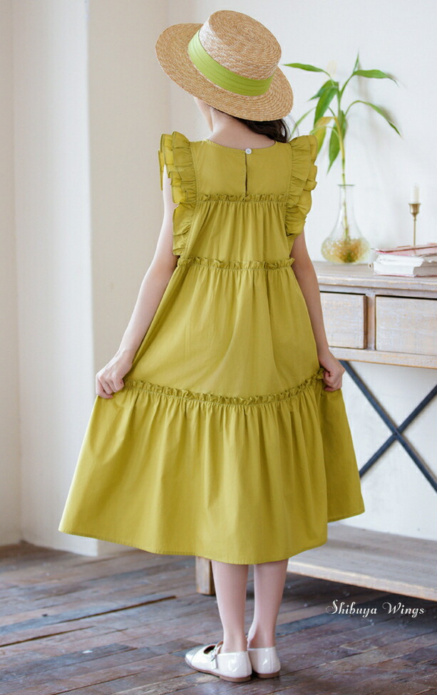 ワンピース フリルスリーブ グリーン キッズ ベビー マタニティ 新登場! 120 130 140 150 160 165 グリーン ホワイト ブラック