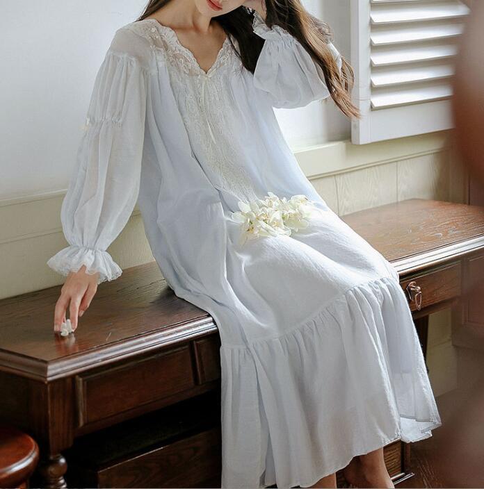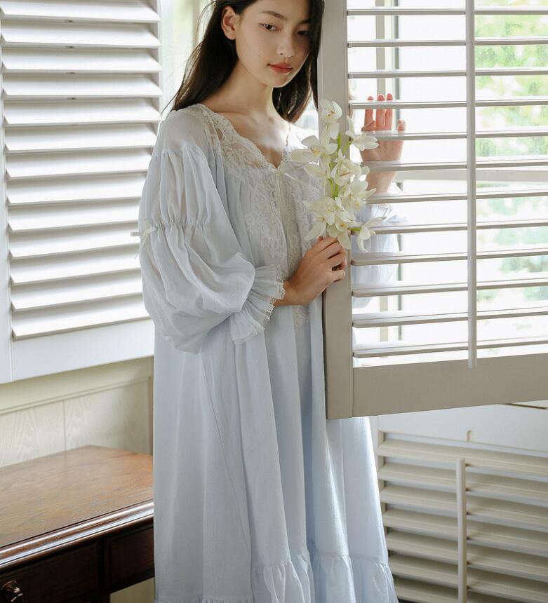 綿100%ネグリジェ レディースロング レディース ナイトウェア ルームウェア ネグリジェ 早い者勝ち ホワイト ブルー S M L XL