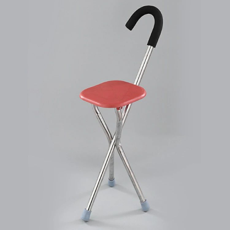 イス ステッキ 杖 一本杖 三脚 軽量 ブルー(丸座面) レッド(角座面) ブラウン(角座面) ブルー(角座面) ブラック(角座面)