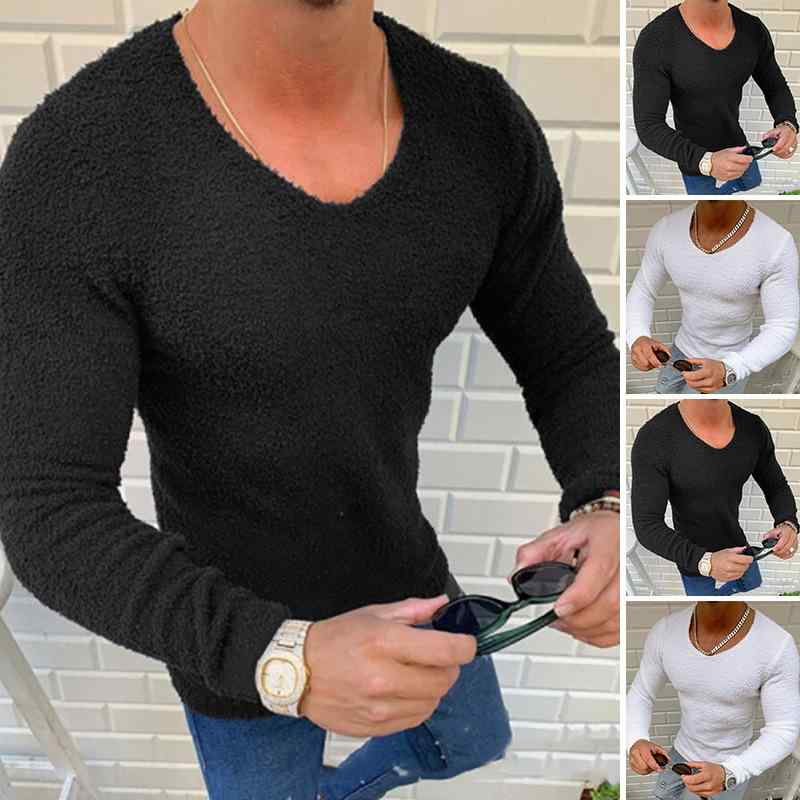 メンズ 秋冬 Vネック スリムフィット トップス ニット セーター 豊富 A:白 B:黒 S M L XL XXL XXXL