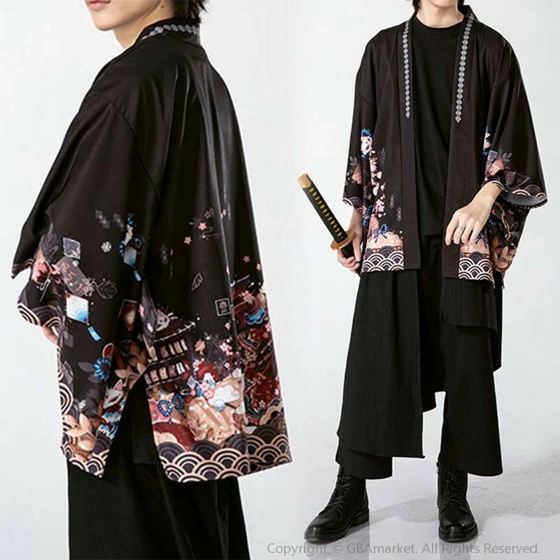 和柄 カーディガン 羽織り コート 浴 メンズファッション 続々入荷中 ブラック レッド S M XL 2XL