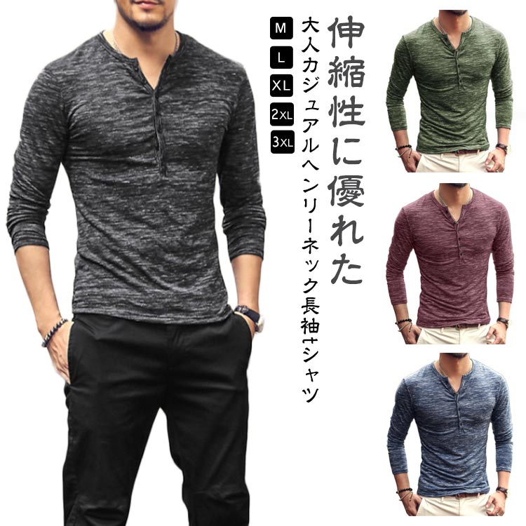 長袖 スリム メンズtシャツ 春秋 ス トップス Tシャツ カットソー 通販 グリーン ブラック ライトグレー アイボリー ブルー バラレッド ライトグリーン ダークグレー レッド M L XL 2XL 3XL