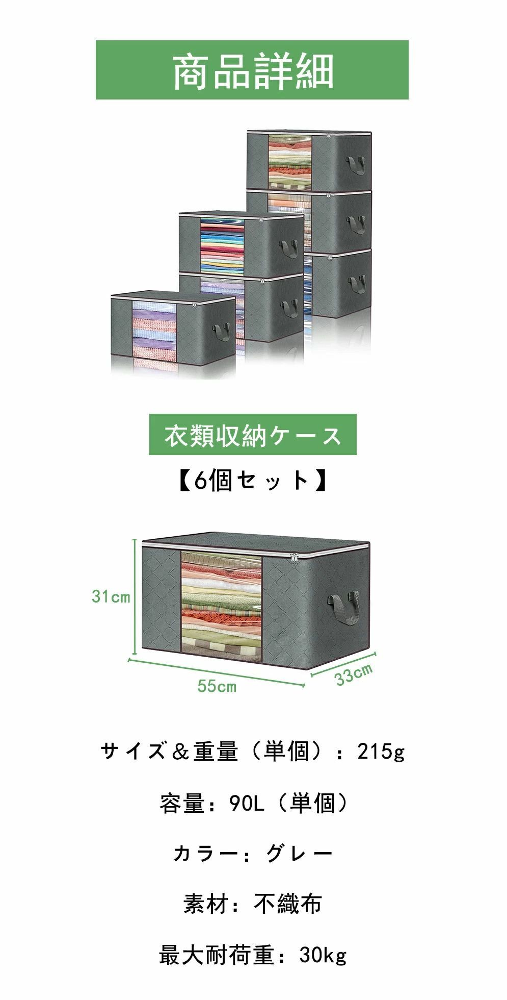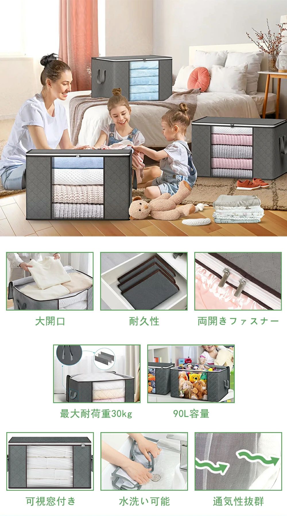 衣類収納ケース 90L大容量 6個セット 耐荷重30KG 洗える 衣類収納袋 押し入れ クローゼット 布団収納袋