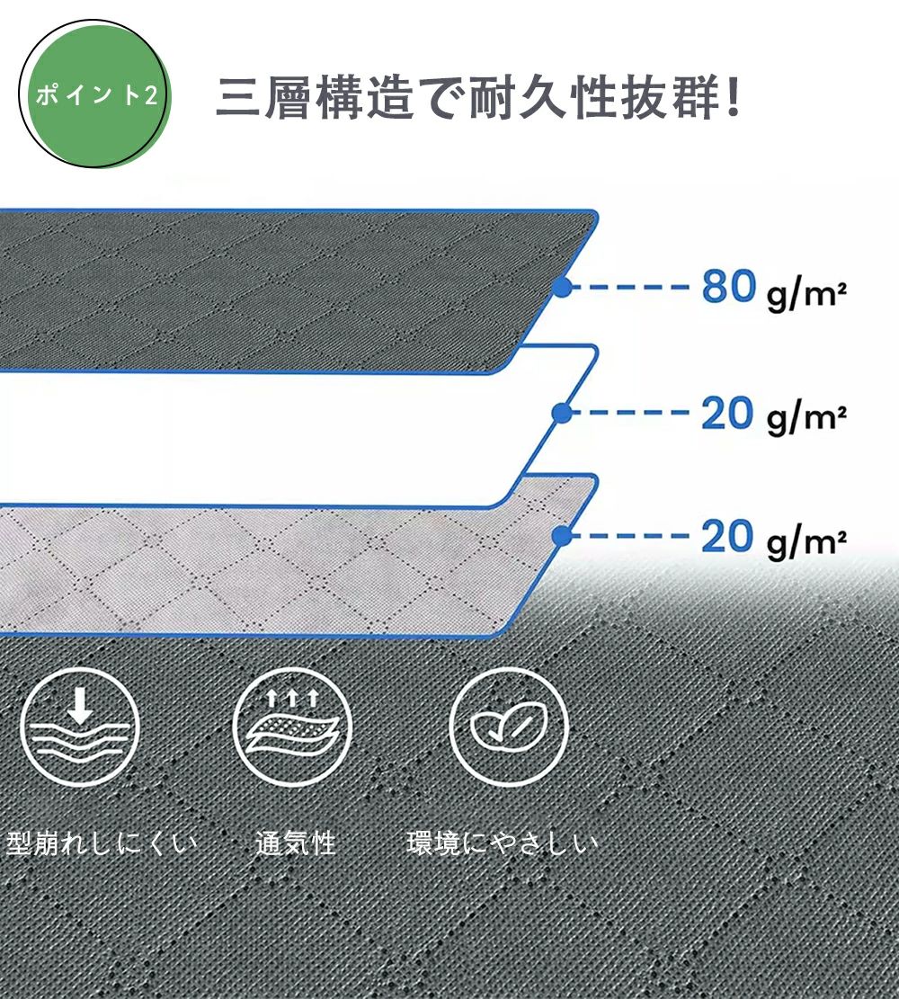 耐久性に優れた三層加厚素材を使用し、大切な衣類や寝具をホコリや湿気からしっかり守ります。さらに、通気性の良い高品質な不織布を採用し、カビや臭いの発生を防ぎながら、収納物を清潔に保ちます。強度が高く、破れにくい設計なので、長く安心してお使いいただけます。