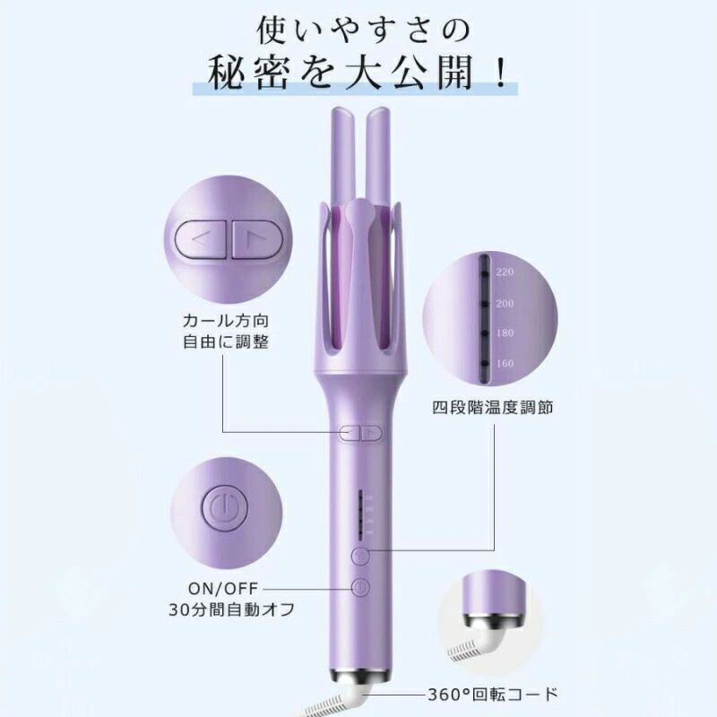 ヘアアイロン 自動巻き カールアイロン パープル ピンク グリーン
