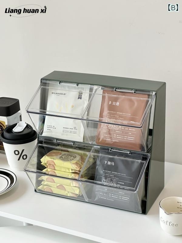 ティーバッグ 収納 ボックス ケース キッチン用品 食器 調理器具 新作 A:クリームホワイト 4分割 B:レトログリーン 4分割 C:クリームホワイト 2段 D:レトログリーン 2段 E:クリームホワイト 2個セット F:レトログリーン 2個セット
