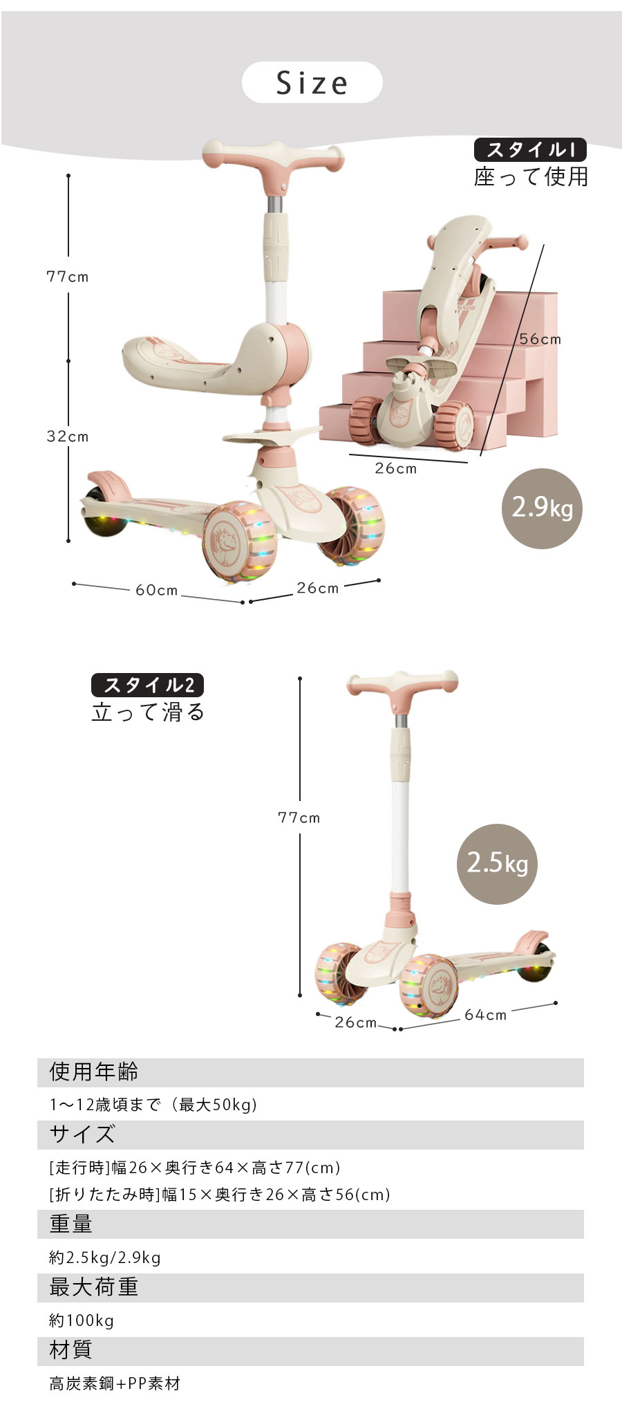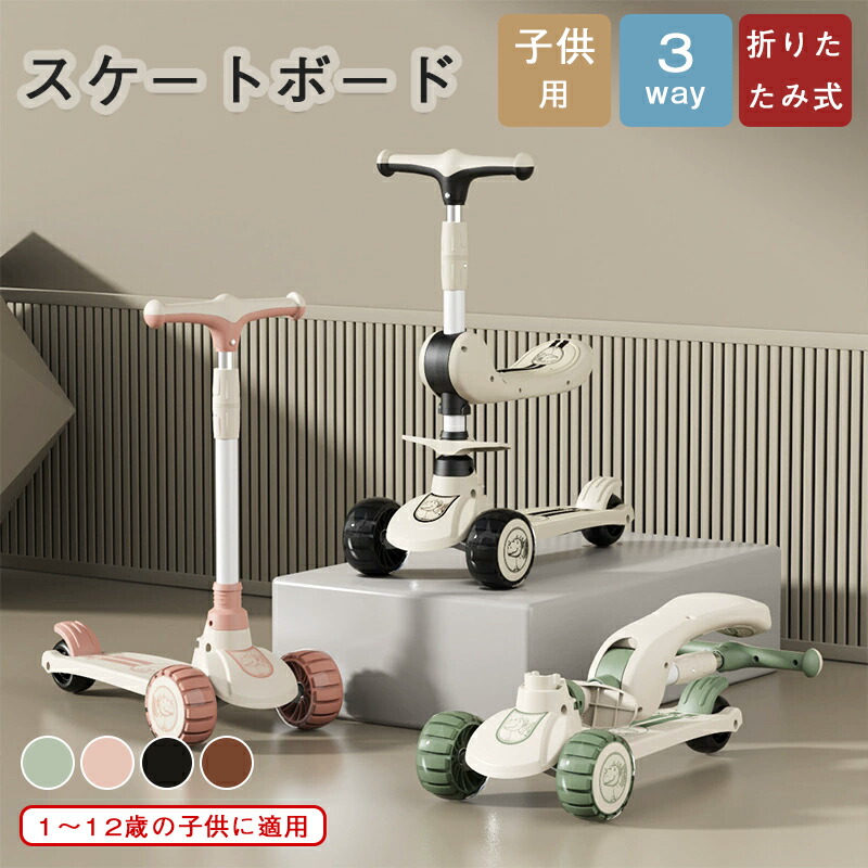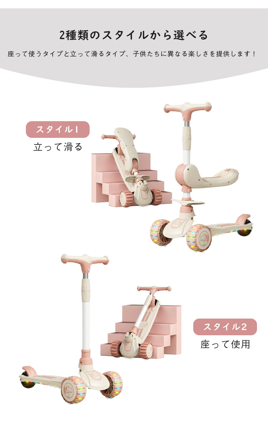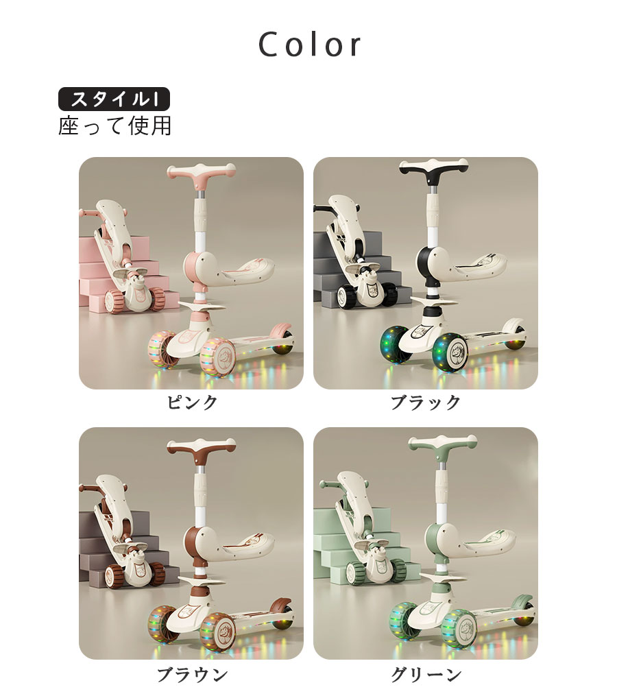 スクーター 子供 1~3歳 6~12歳 スポーツ アウトドア 新登場! ブラック ピンク ブラウン グリーン スタイル1(座って使用) スタイル2(立って滑る)