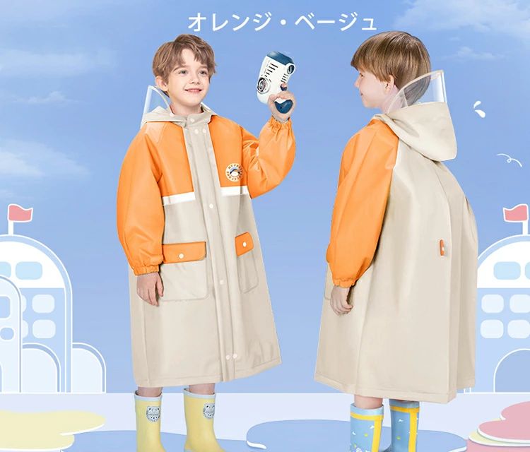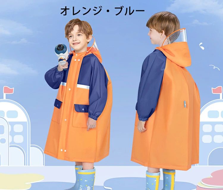 キッズ ランドセル対応 レインコート キッズ ベビー マタニティ 通販 オレンジ・ベージュ ピンク・パープル ブルー オレンジ・ブルー L XL 2XL 3XL