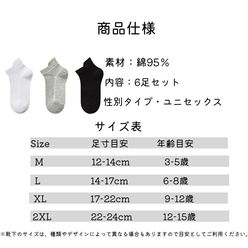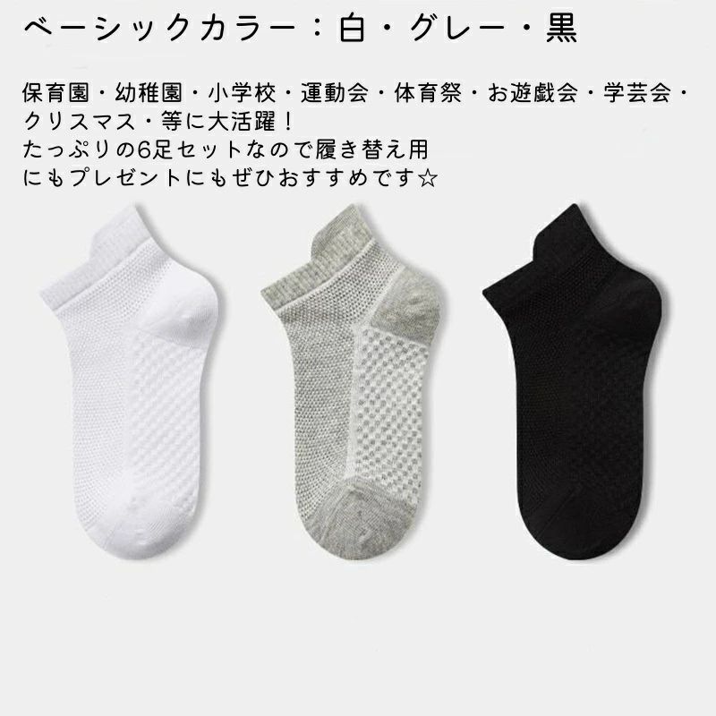 靴下 メッシュ 子供 ソックス 6足セ キッズ 靴下 タイツ 靴下 続々登場 ホワイト×6足 ブラック×6足 グレー×6足 白×2黒×2灰×2 M(3-5歳) L(6-8歳) XL(9-12歳) 2XL(12歳-15歳)