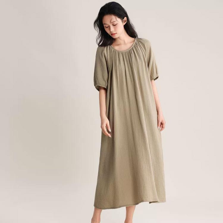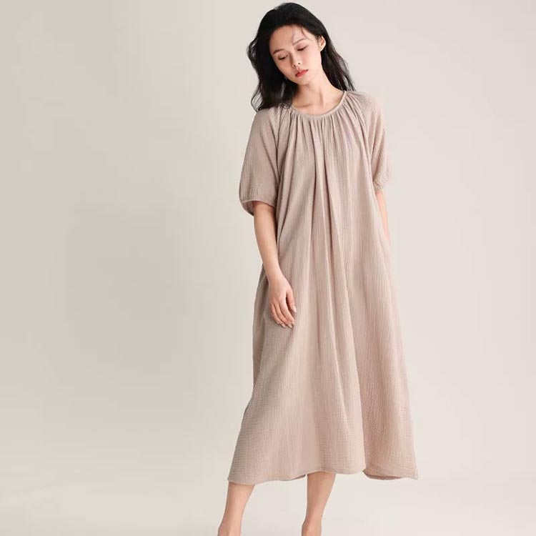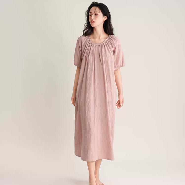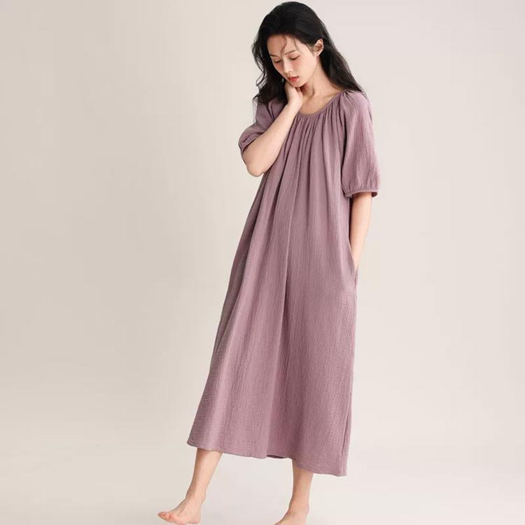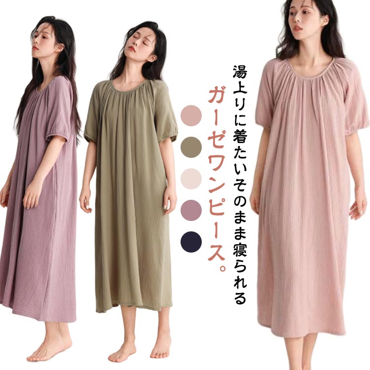ルームウェア ワンピース 湯上がりガー ピンク グリーン ベージュ パープル ネイビー M L