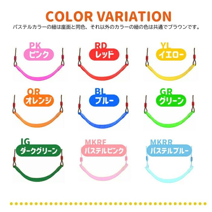 ア 子ども お庭 自宅 屋外 室内 屋 おもちゃ スポーツトイ アクショントイ 大型遊具 ブランコ 続々入荷中 (ダークグリーン)IG (オレンジ)OR (ブルー)BL (イエロー)YL (レッド)RD (グリーン)GR (ピンク)PK (パステルブルー)MKRR (パステルピンク)MKRF