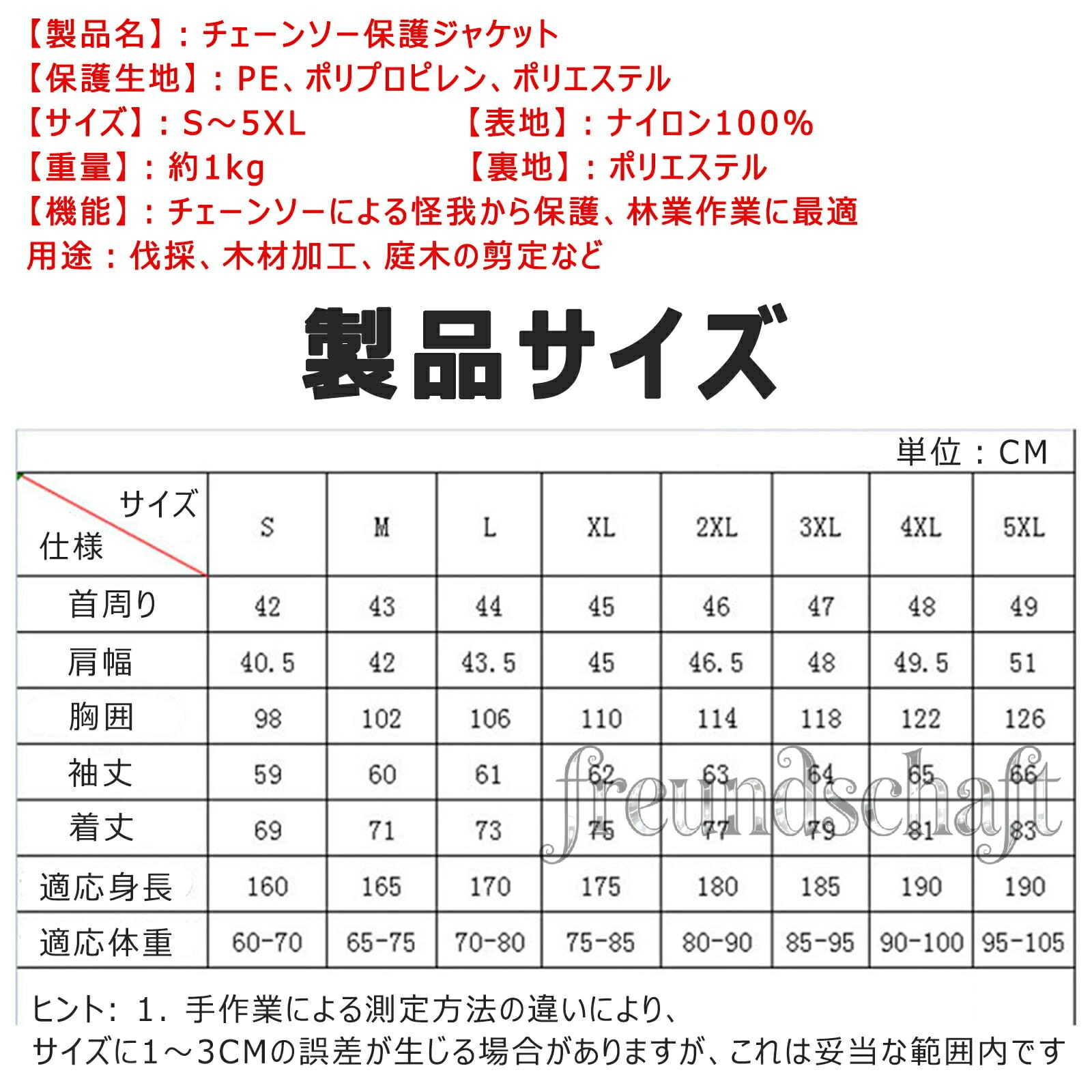 チェーンソー保護ジャケット 耐切断性能 作業服 その他 通販 orange green L M S XL XXL XXXL