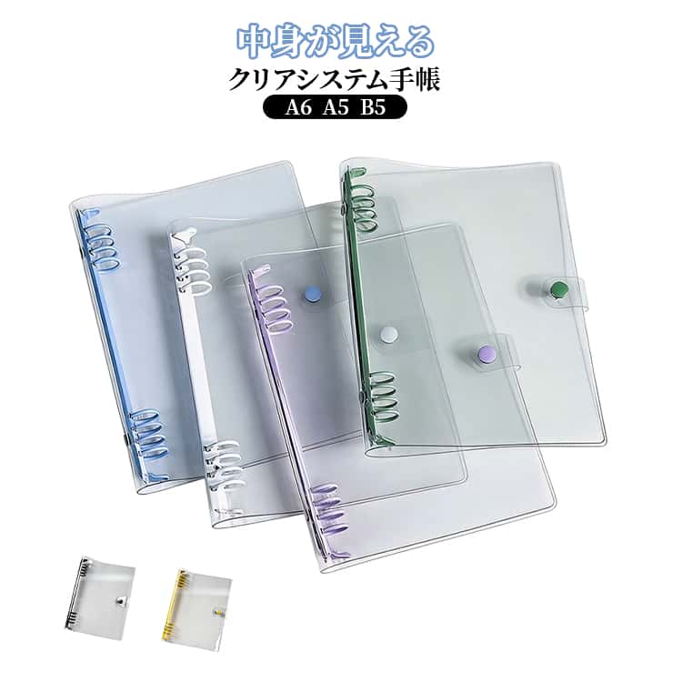 クリアバインダー スケジュール帳 B5 日用品雑貨 文房具 手芸 通販 ブルー グリーン パープル イエロー ブラック ホワイト A6 A5 B5