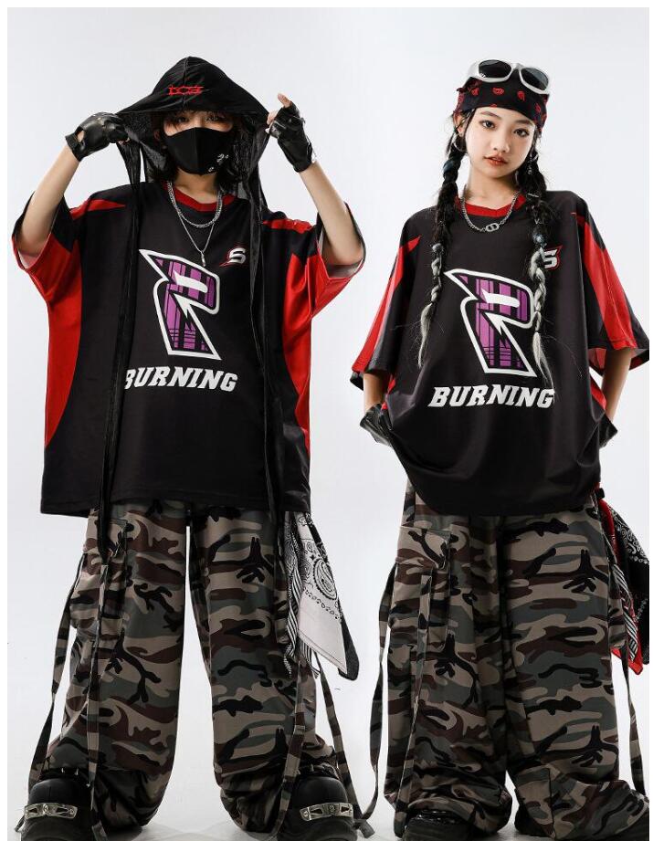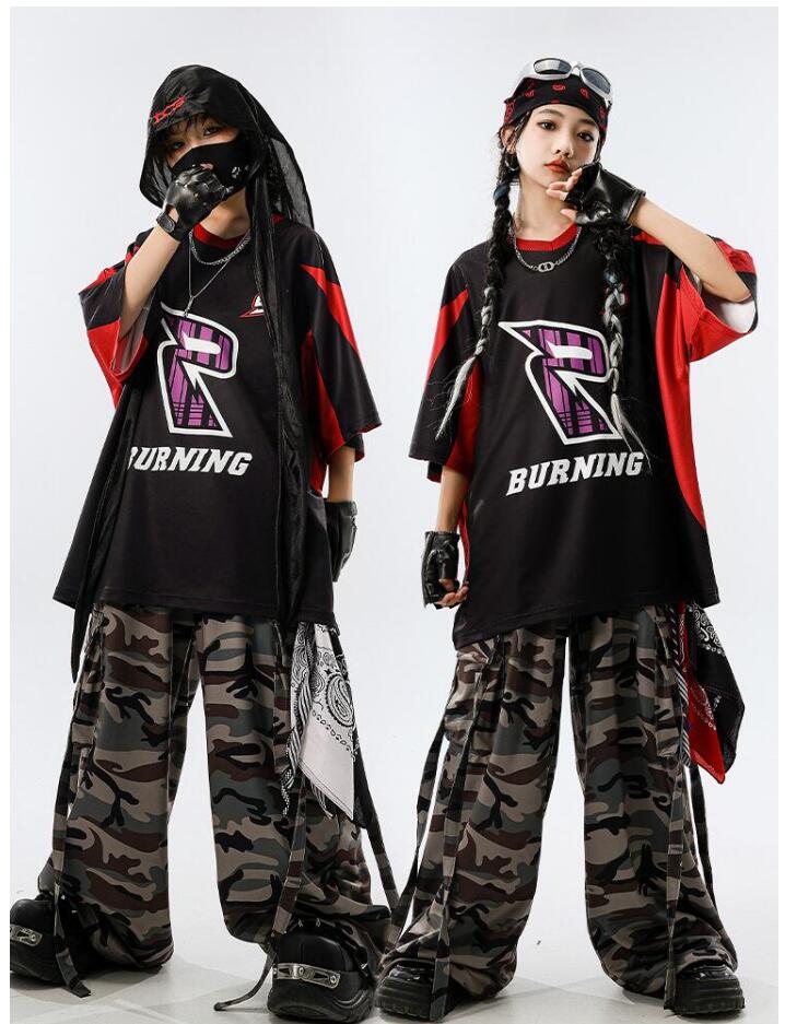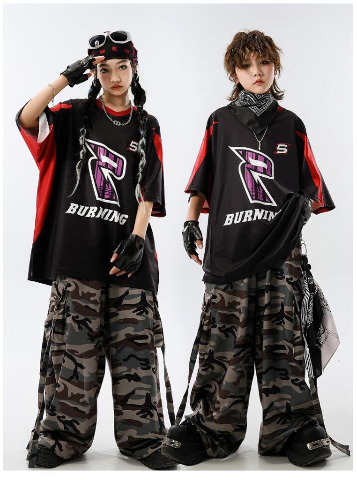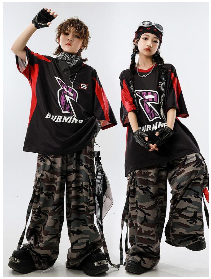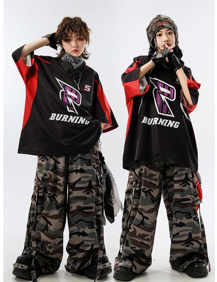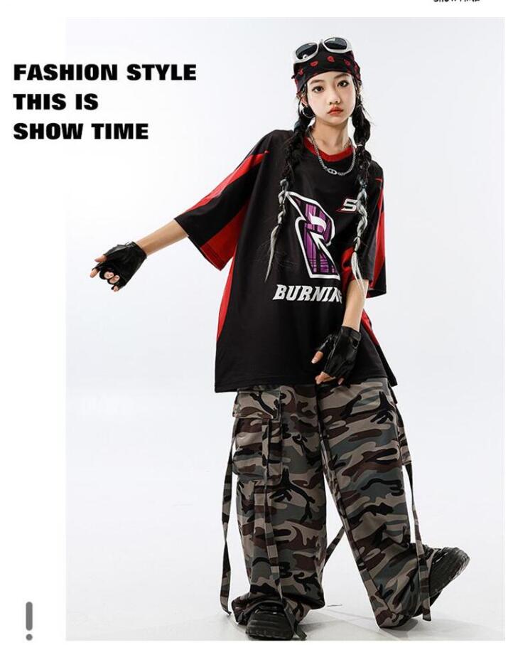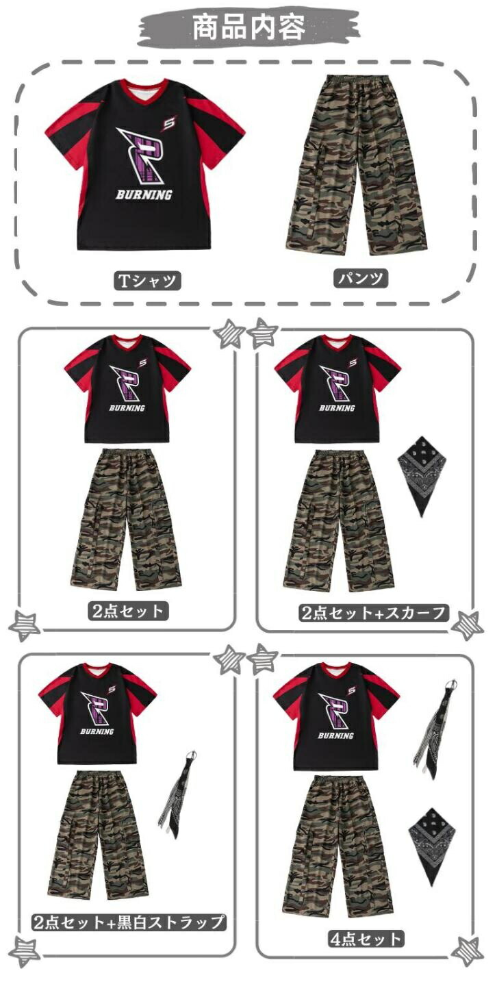 ダンス 衣装迷彩 キッズダンス衣装 セ ベビー ベビー服 ファッション 上下セット セットアップ 続々入荷中 110cm 120cm 130cm 140cm 150cm 160cm 170cm 180cm Tシャツ パンツ 2点セット 2点セット+スカーフ 2点セット+黒白ストラップ 4点セット