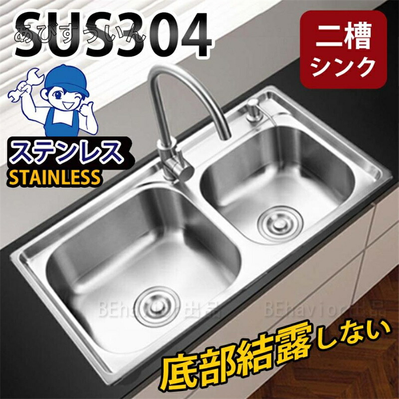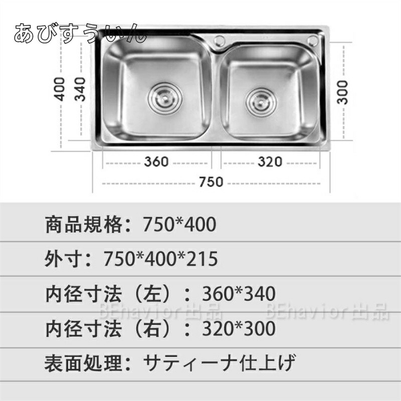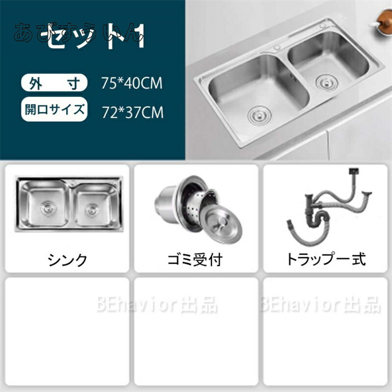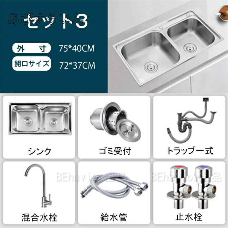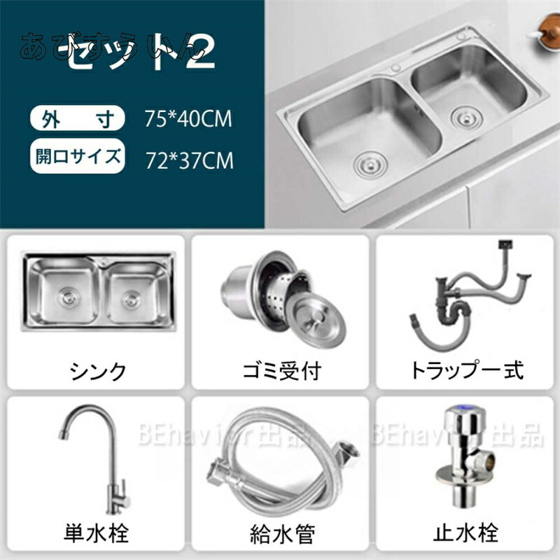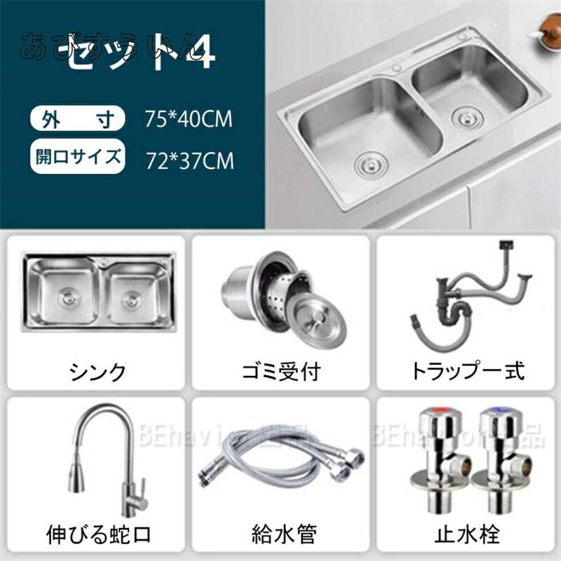 ステンレスシンク シンク 二層シンク セット1(水栓なし) セット2(単水栓) セット3(混合水栓) セット4(伸びる蛇口) 75*40cm 了承済み