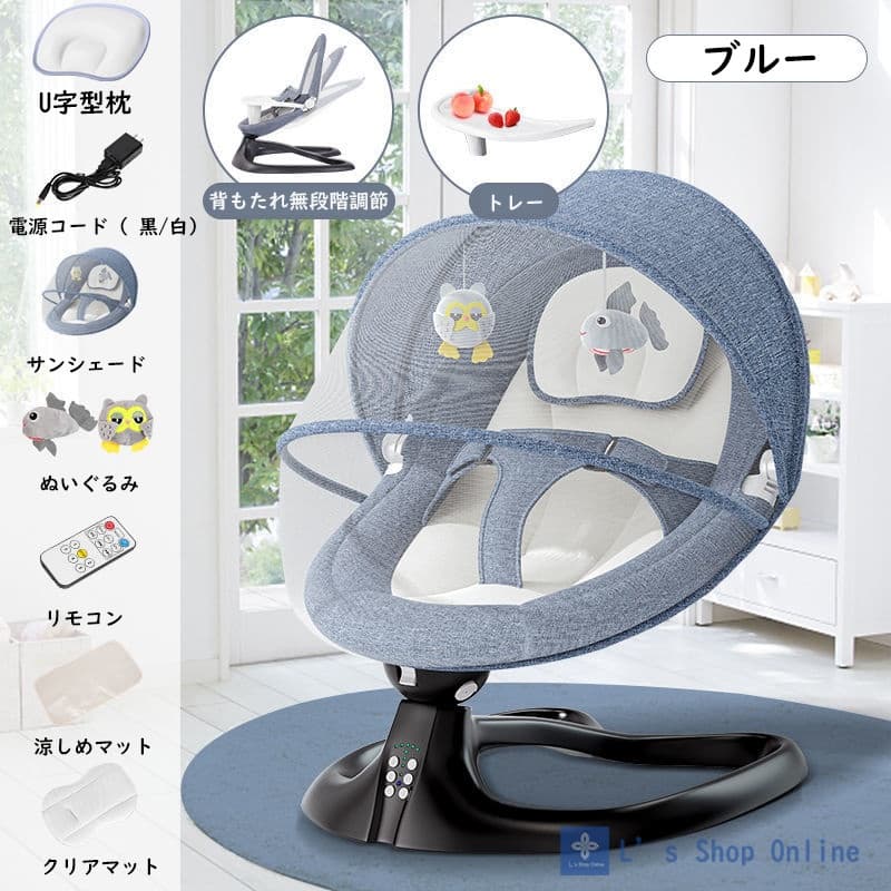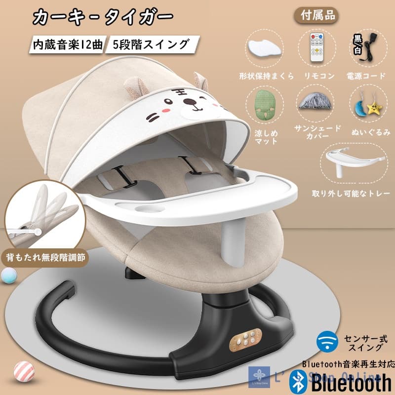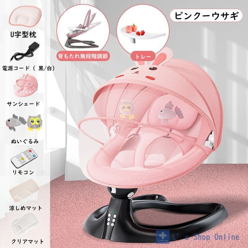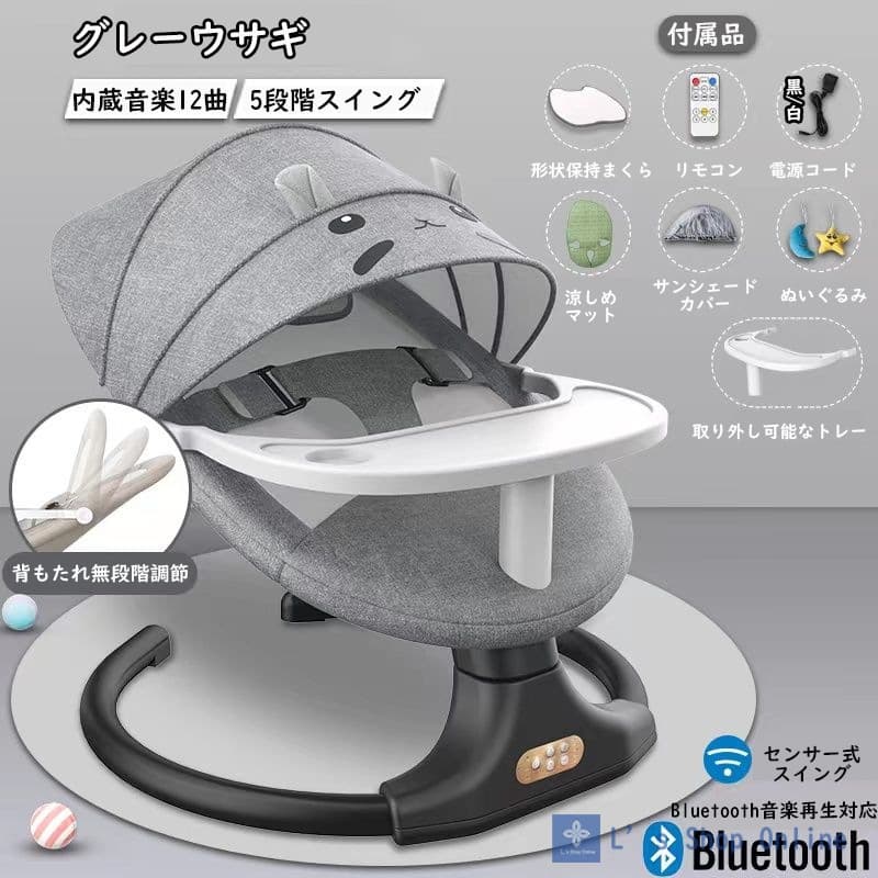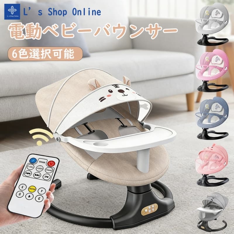 ベビーバウンサー 電動 ベビーゆりかご グレー ピンク ブルー ピンクウサギ グレーウサギ カーキタイガー