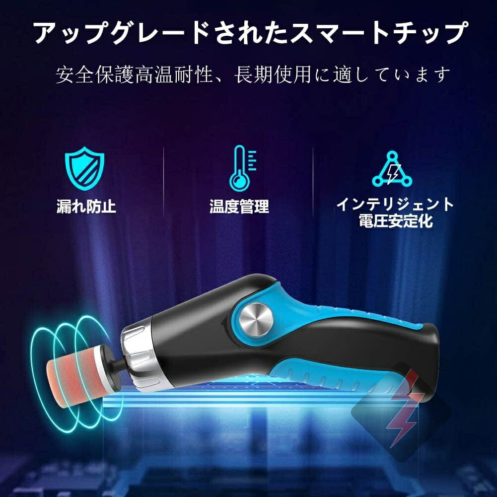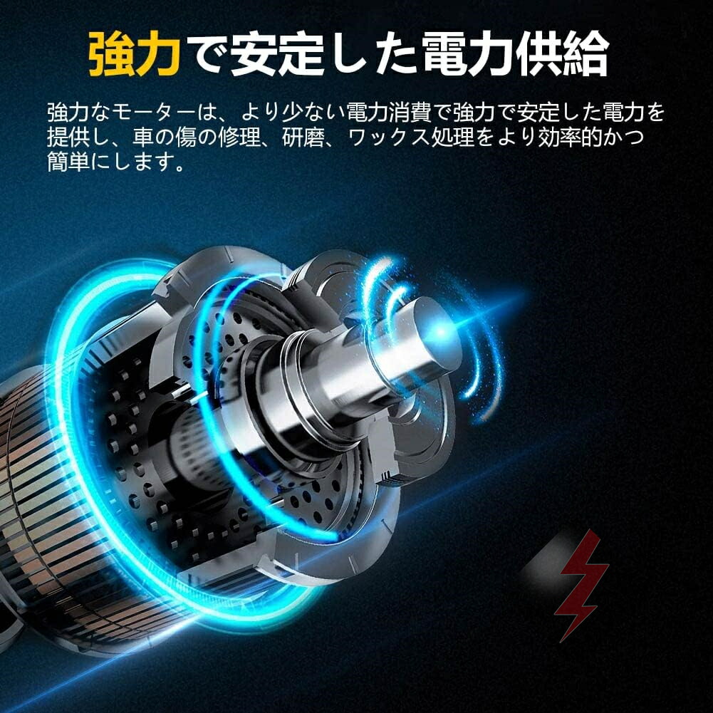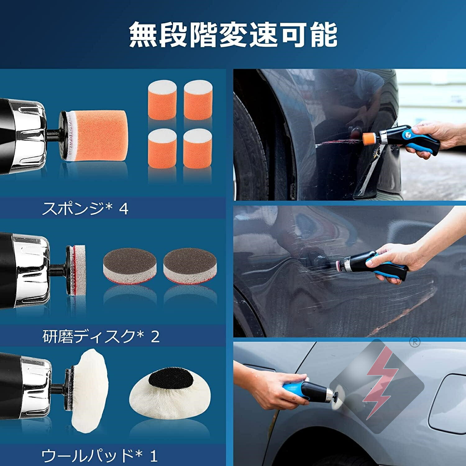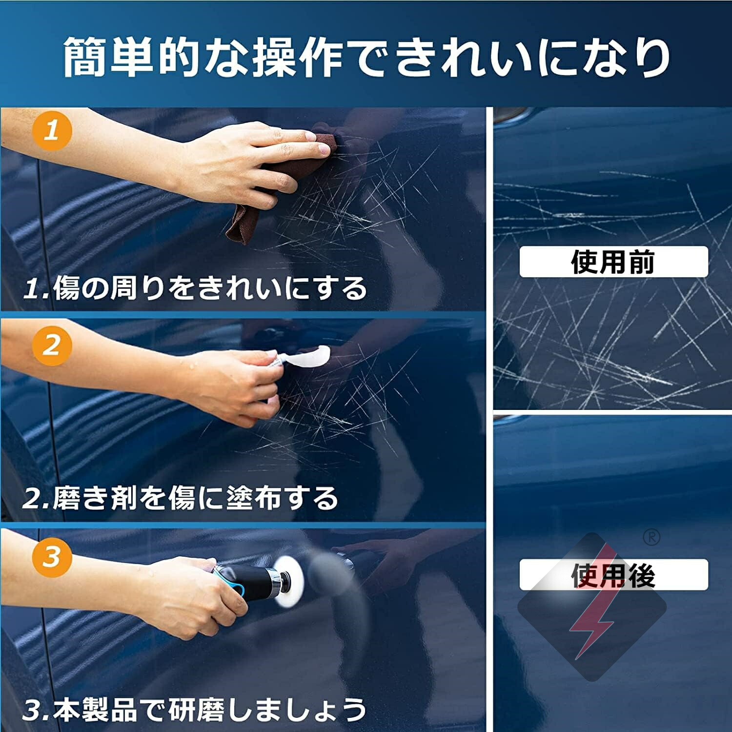 【安全性にも配慮】【人間工学;実用的】コンパクトサイズ&軽量&高品質の素材、持ち運び可能、耐久性があり、仕上げ、配合、ワックスがけ、研磨、バフ研磨、脱毛に最適です。 【アップグレードされたスマートチップ】漏れ保護+インテリジェントな電圧安定化+温度制御、安全保護および高温耐性があり、長期間の使用に適しています。 【TPEコーティングハンドル】快適なグリップ&優れた摩擦、耐摩耗性、および長時間の操作のための耐疲労性。 [強い;安定した電力供給]強力なモーターは、より少ない電力消費で強力で安定した電力を提供し、車の傷の修理、研磨、ワックスがけをより効率的かつ簡単にします。 【無段階速度調整】使いやすいスピードノブを時計回りに回して、0rpmから8500rpmまで速度を調整します。調整可能な速度と正確な制御により、修理と研磨の効率を確保します。 【ワイヤレス設計】2000mAhのリチウム電池を内蔵し、USB充電後の使用に便利、低消費電力、長寿命。 【各種付属品】スポンジ研磨ディスク4枚(一次研磨)、細砂研磨ディスク2枚(深研磨)、ウール研磨ディスク(鏡面研磨)が付属し、各種キズの除去・補修が容易です。 【幅広い用途】自動車の表面の傷や黄ばみランプの迅速な修理、ペンキの太陽模様の除去、ペンキのり、シェラック、ペンキや部品の酸化痕、車の研磨&アンプ;研削等