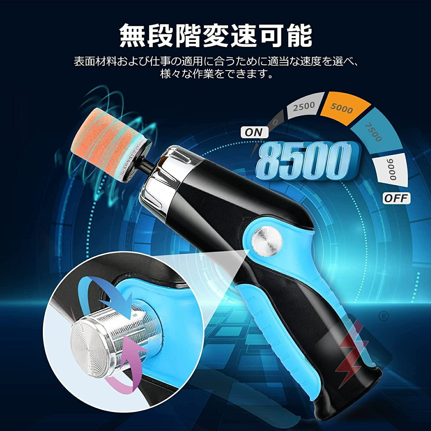 電動 ポリッシャー 小型ポリッシャー 可変速カーポリッシャー 60W 0-8500RPM 電動研磨機 ミニポリッシャー コードレス USB充電式 コンパクト軽量 洗車 艶出し 家具のキズ修復 研磨器