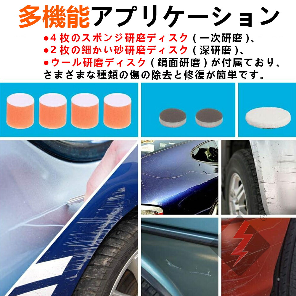 【豊かなセット内容&1年間保証】傷の迅速な修復、ペイントの太陽のパターンの除去、車の研磨、薄黄色の研磨修理、酸化痕跡の除去に使用できるウールパッド1つ、スポンジパッド4つ、サンドペーパー2つが付属しています塗装、深い傷の修理と研磨、部品の酸化点の除去など。