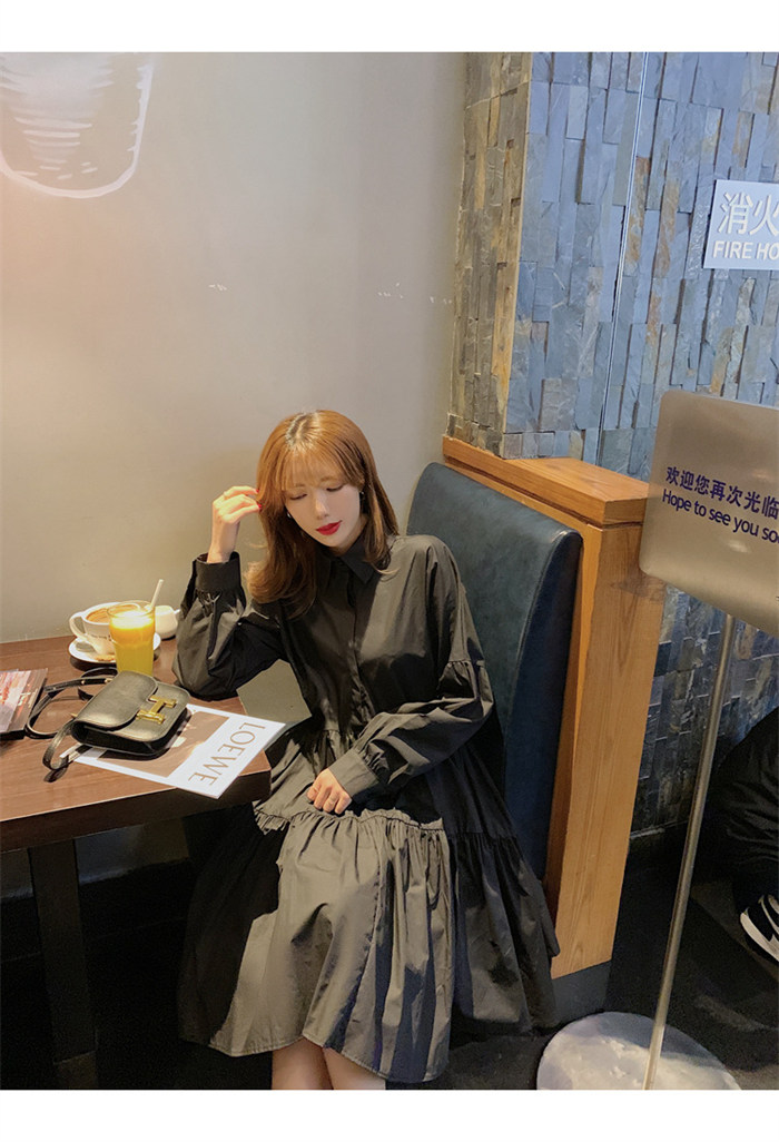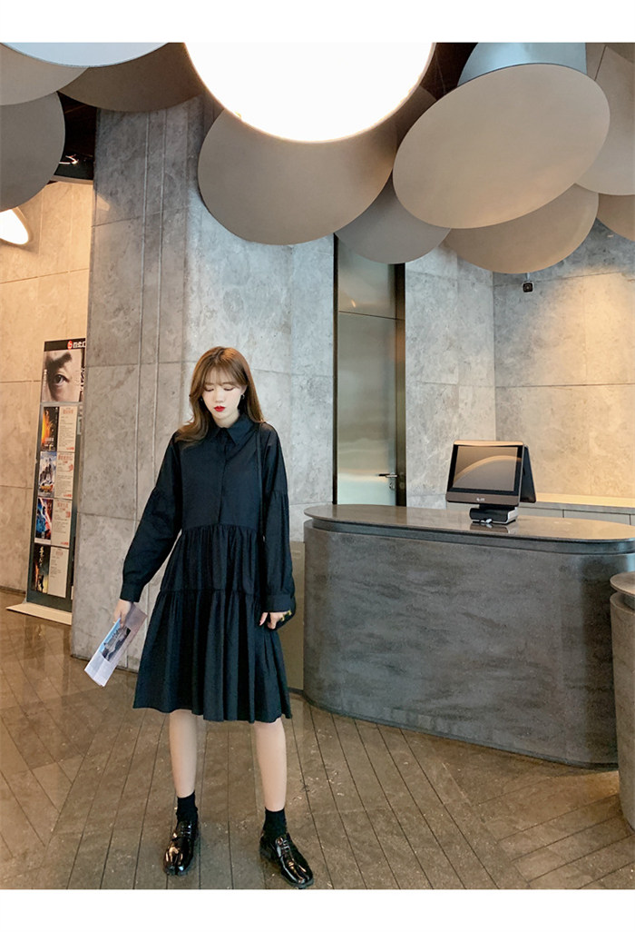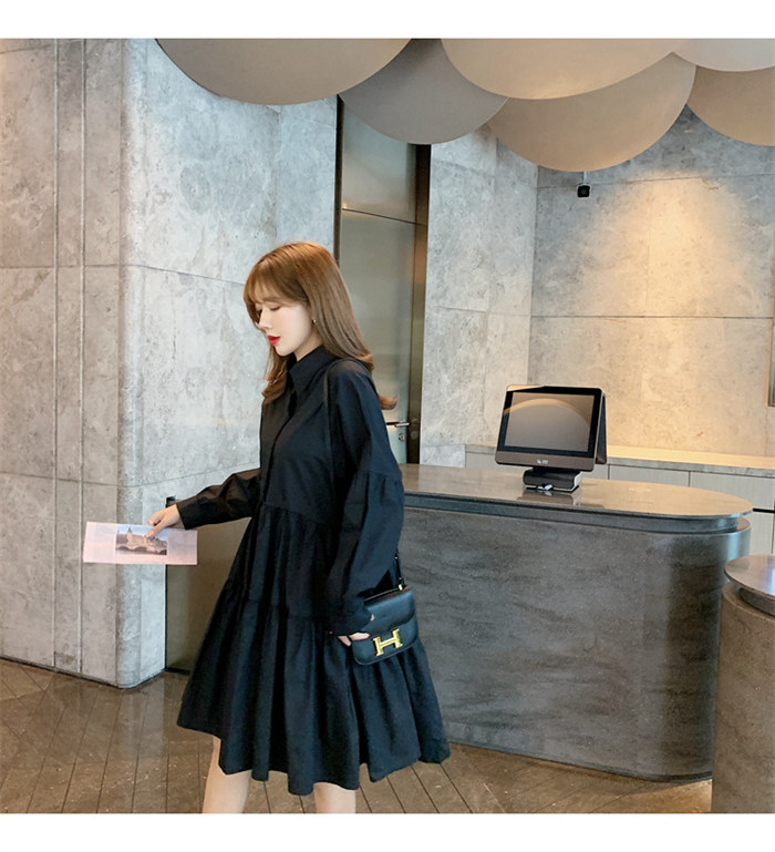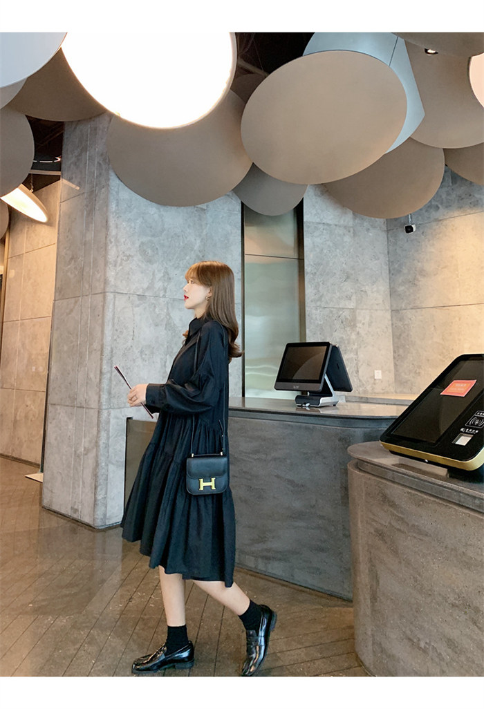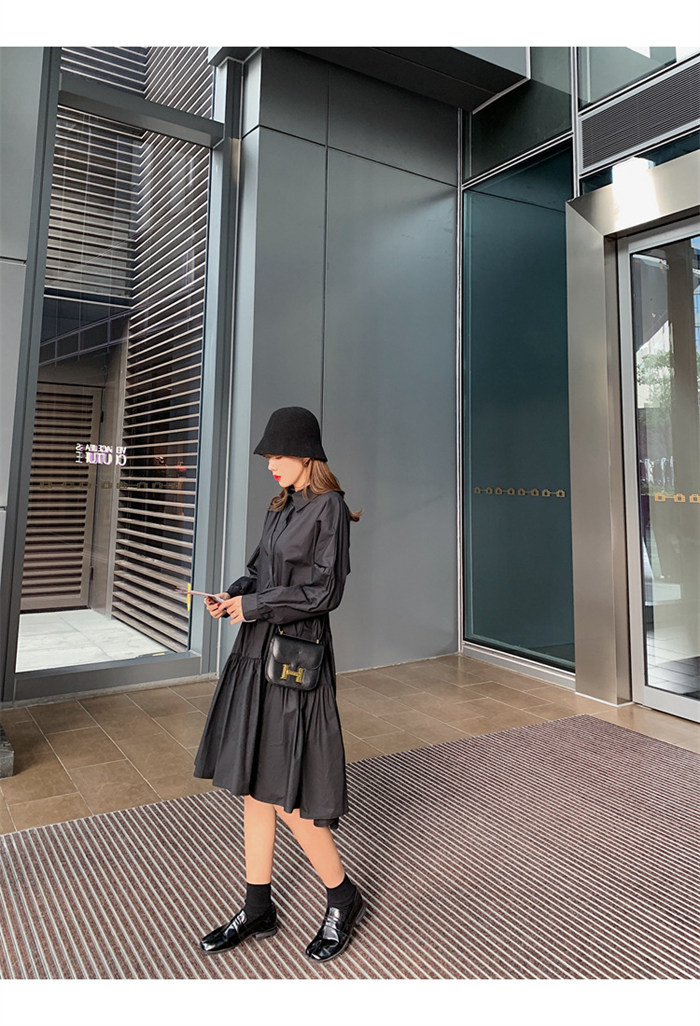 タキシードシャツワンピース フロントタ ブラック ホワイト
