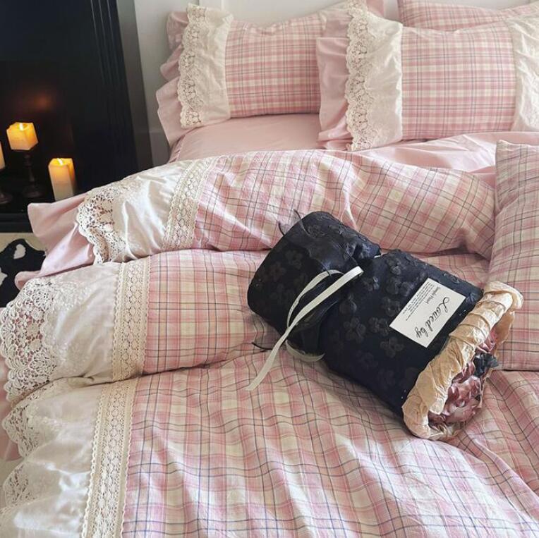布団カバーセット 姫系 可愛い チェッ インテリア 寝具 収納 超目玉商品 1.5mサイズ用(4点セット) 1.8mサイズ用(4点セット) 2.0mサイズ用(4点セット) ピンク コーヒー