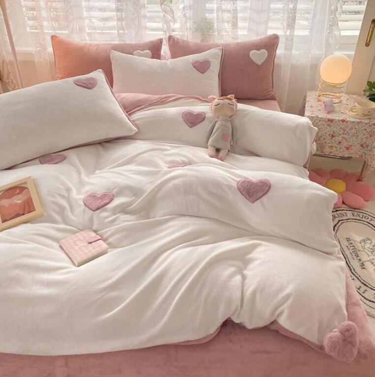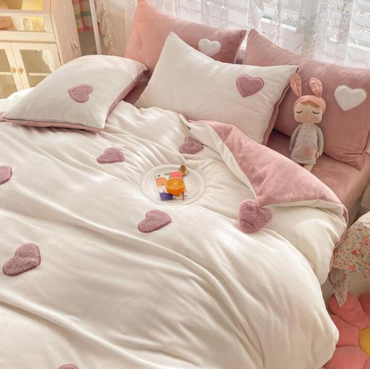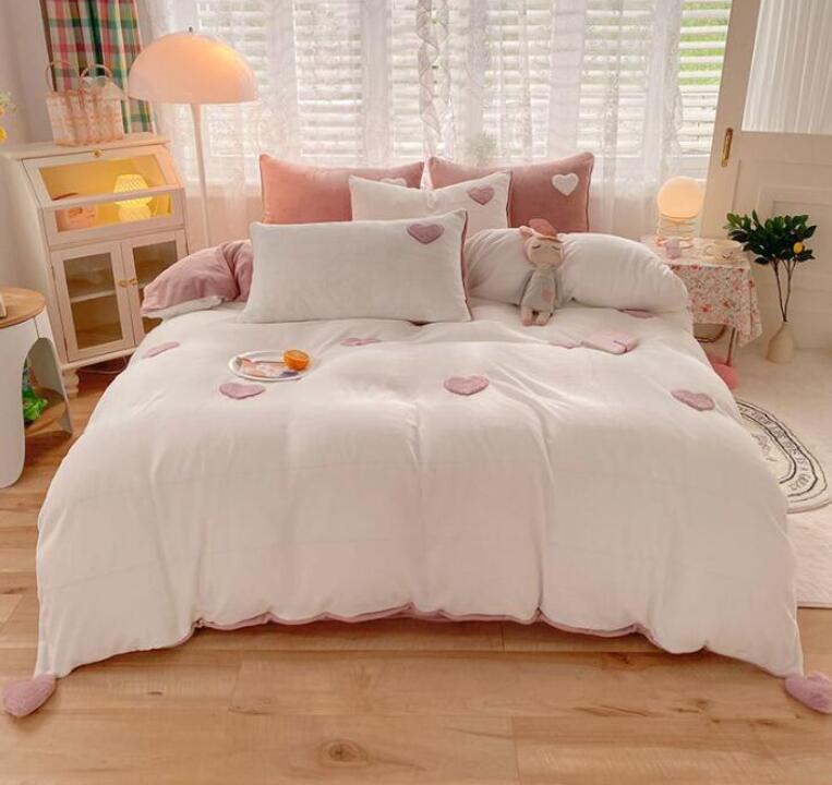 布団カバーセット 超可愛いハート 姫系 寝具 掛け敷き布団セット 新登場! フラットシーツタイプ1.5m フラットシーツタイプ2.0m ボックスシーツタイプ1.5m ボックスシーツタイプ1.8m シングル(3点セット) ホワイト 小豆色 ピンク グリーン ブルー
