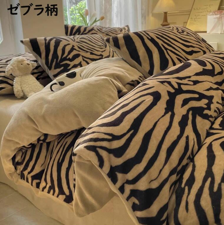 布団カバーセット 秋冬 配色 ゼブラ柄 寝具 掛け敷き布団セット 超目玉商品 シングル(3点セット) フラットシーツタイプ1.5m フラットシーツタイプ2.0m ボックスシーツタイプ1.5m ボックスシーツタイプ1.8m ゼブラ柄 ヒョウ柄