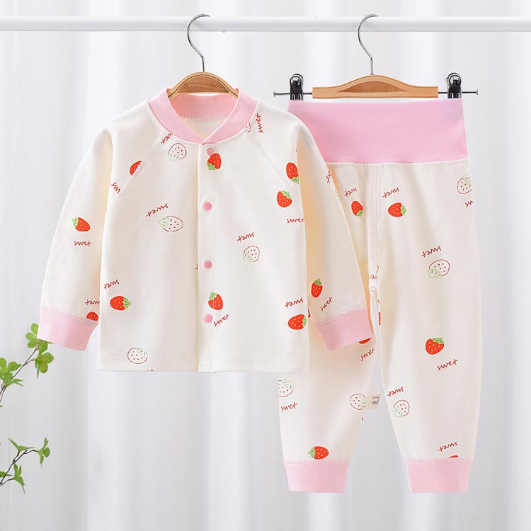 2点セット ベビーパジャマ 腹巻付き キッズ ベビー マタニティ 新作 くま1 くま2 うさぎ いちご 松かさ すいか 73cm 80cm 90cm 100cm
